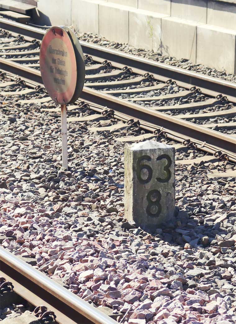 km 0,0 der Strecke Frankfurt (Main) Hbf 0,0 - Wiesbaden Ost 37,80 - Wiesbaden-Biebrich 39,47 - Niederlahnstein 123,82 - km 125,70 = km 154,68 (auch Angabe: 125,72 = 154,66) von Mülheim (Ruhr)- Speldorf 0,18 (siehe auch Tabelle 3, Ziffer 2) | ||