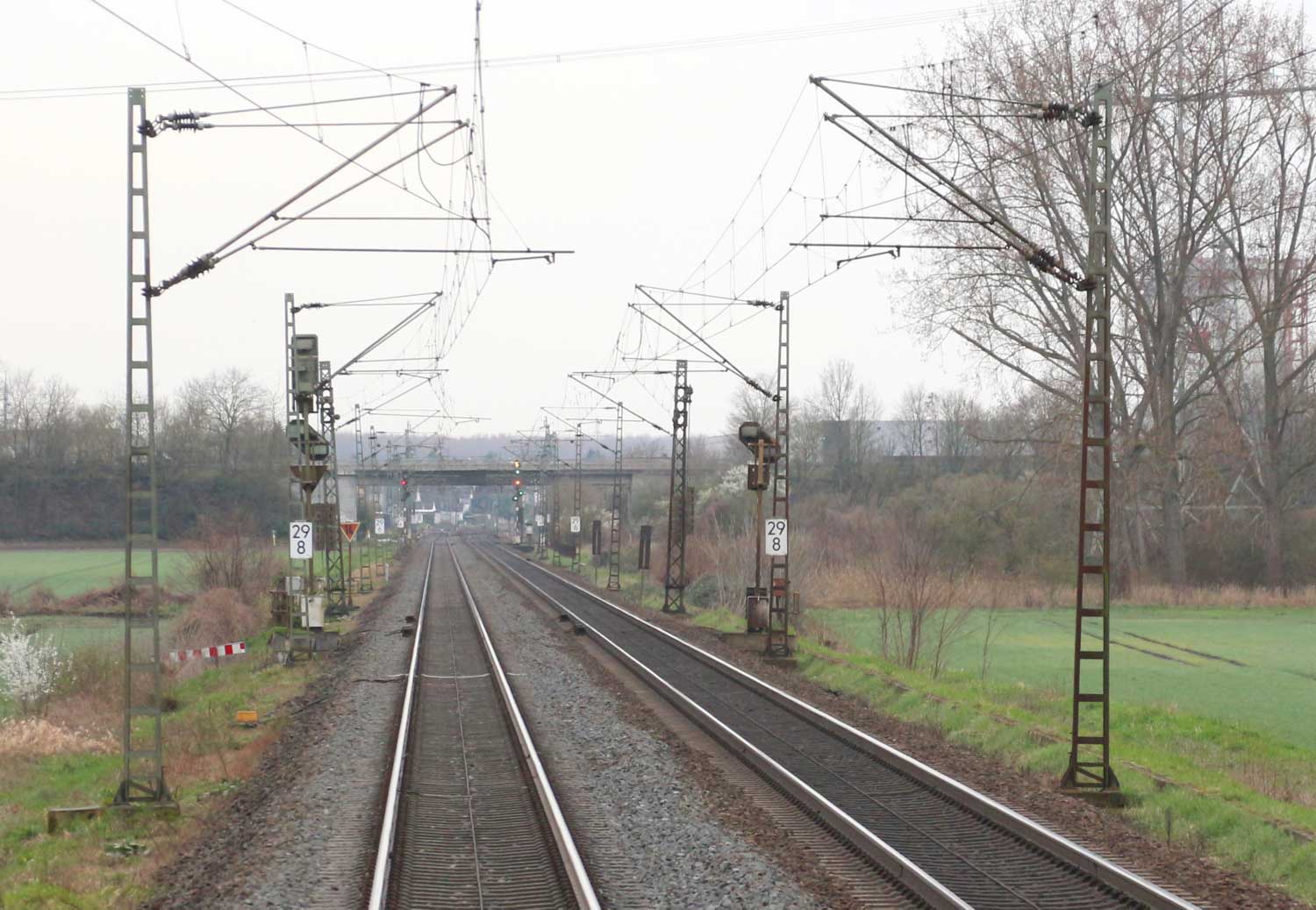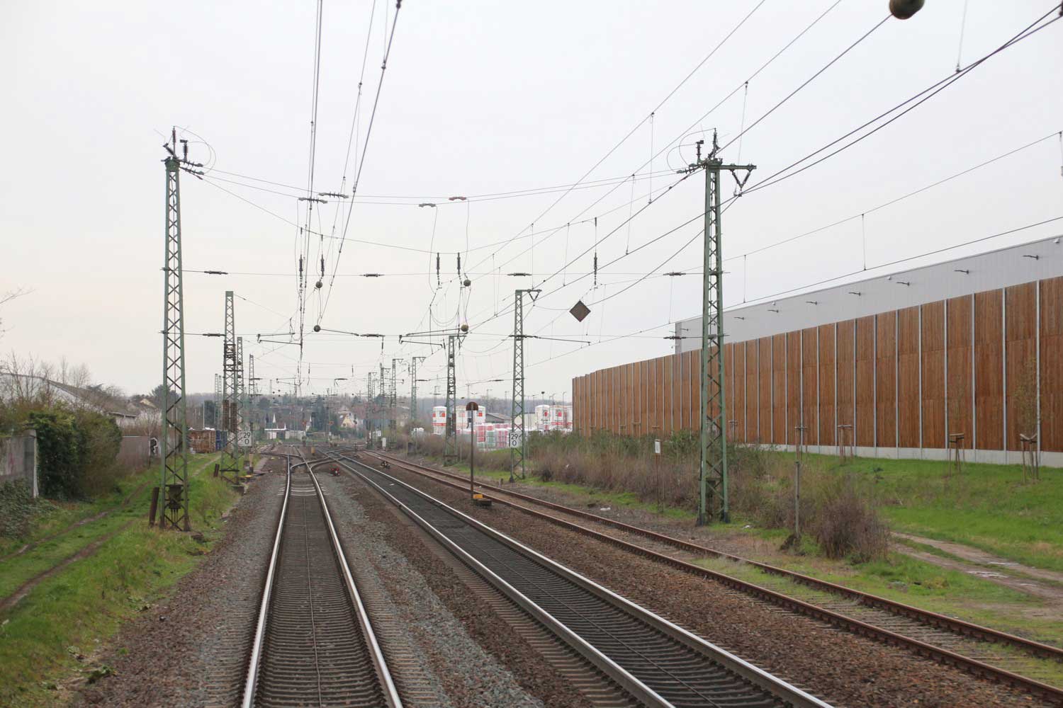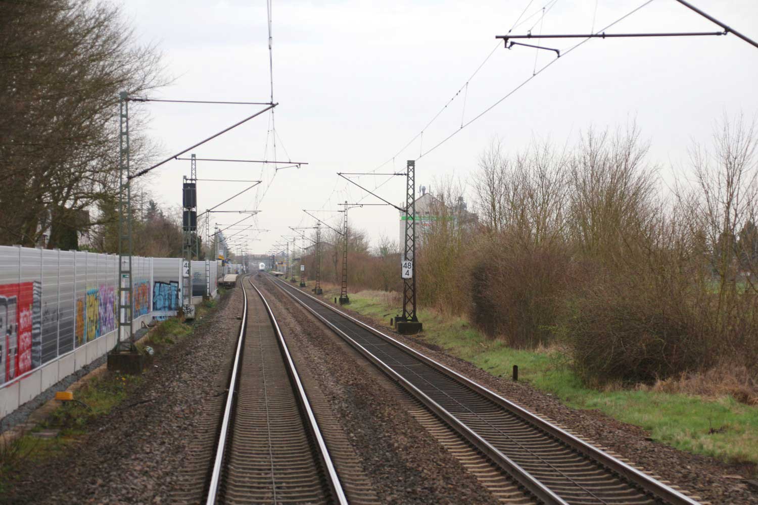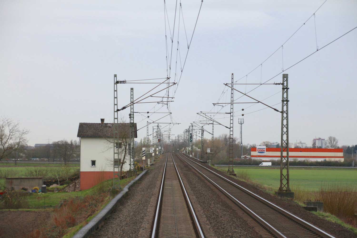 bei km 74,6 zwischen Zeppelinheim und Frankfurt am Main Stadion - Blick Richtung Mannheim