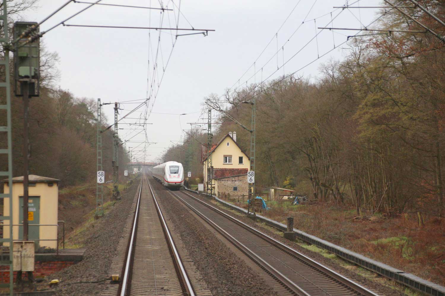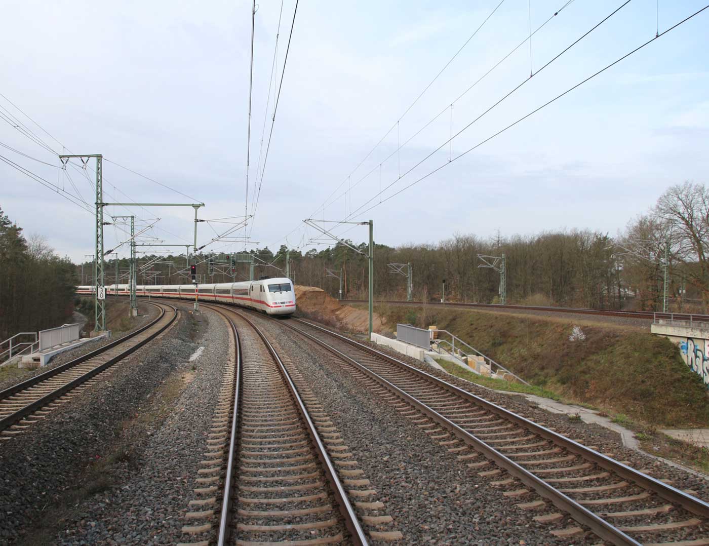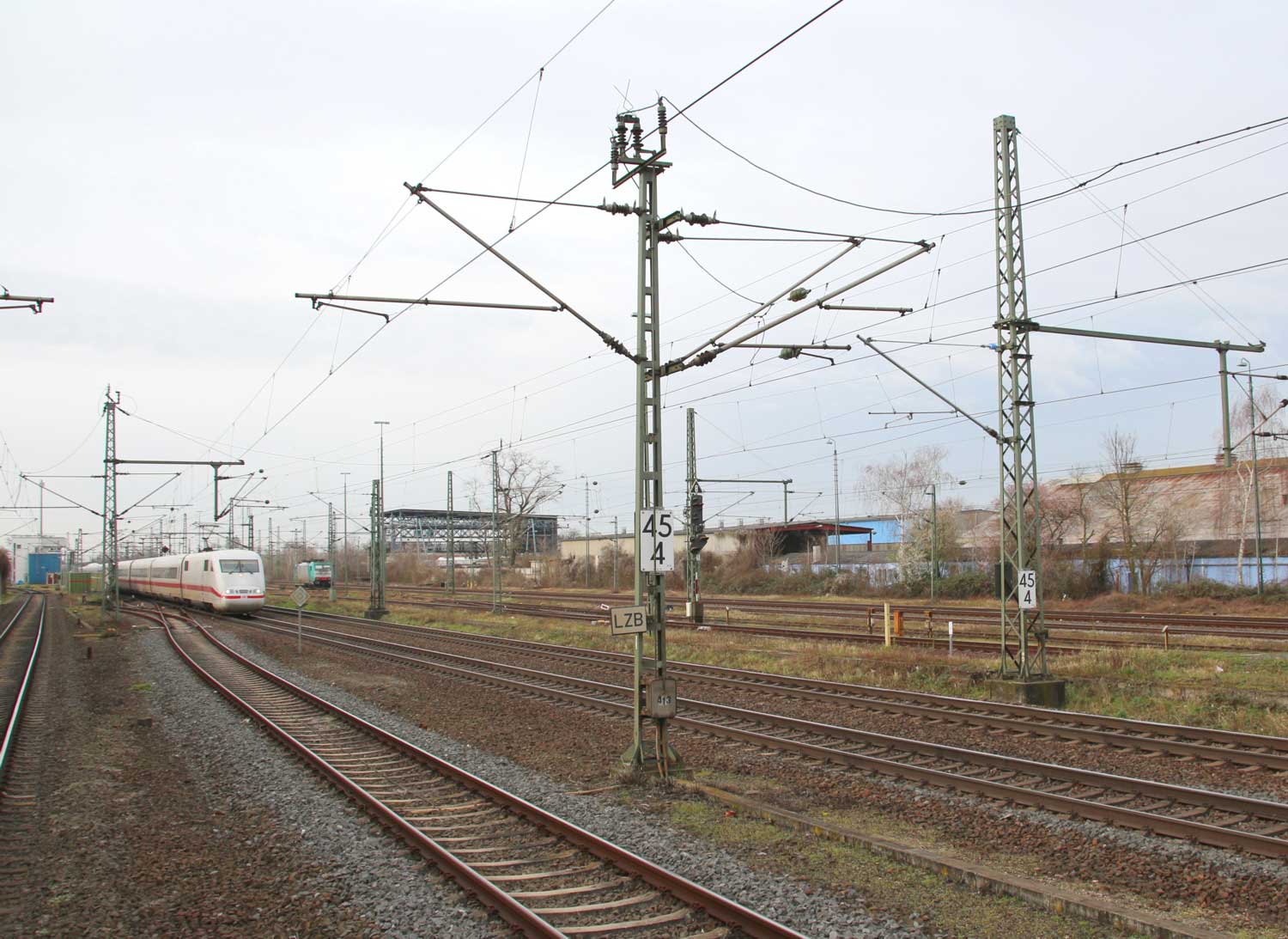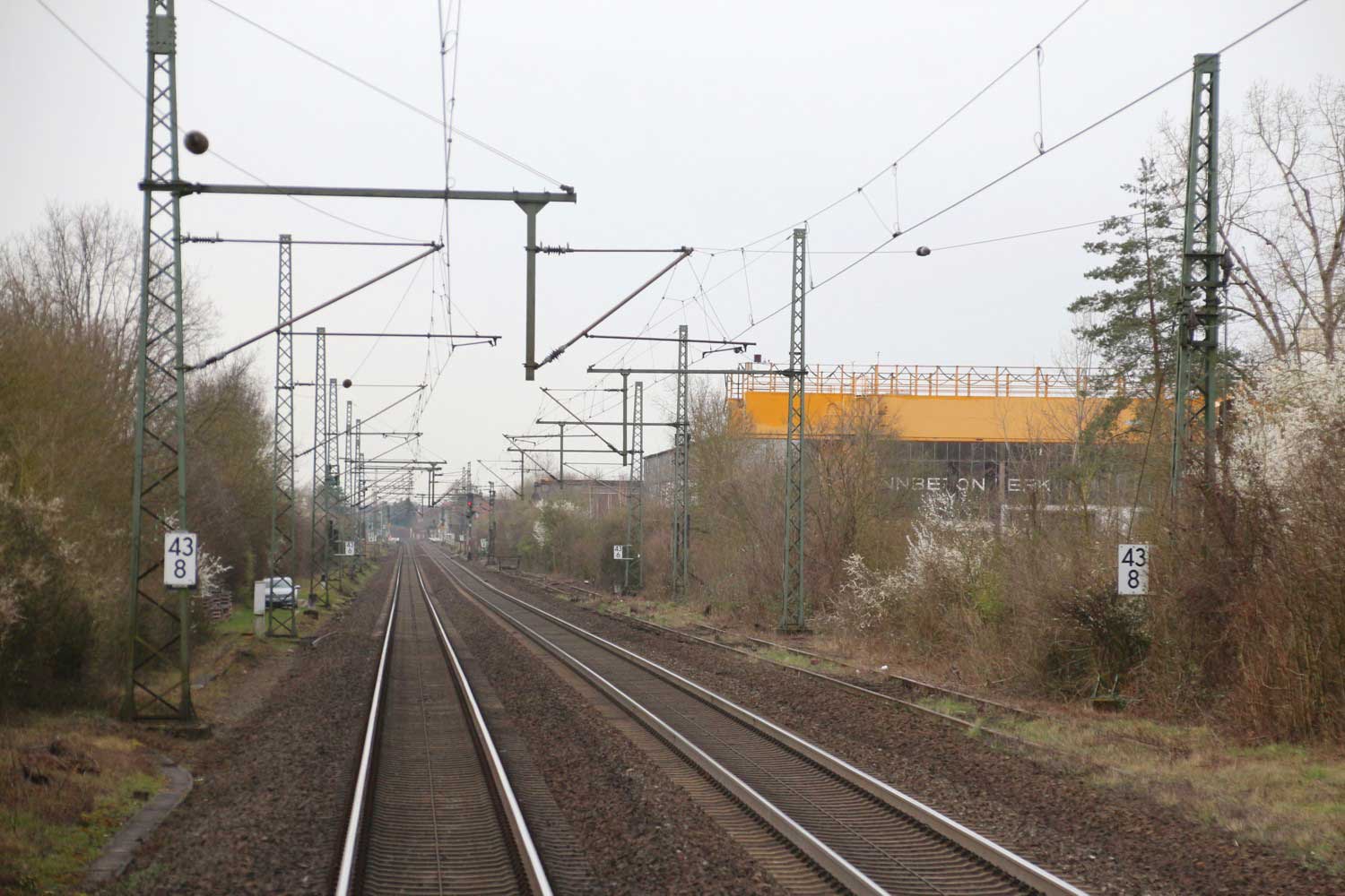 bei km 74,6 zwischen Zeppelinheim und Frankfurt am Main Stadion - Blick Richtung Mannheim