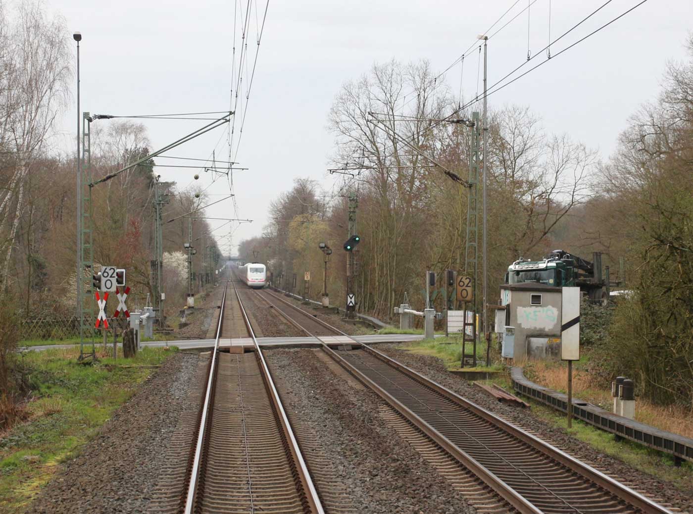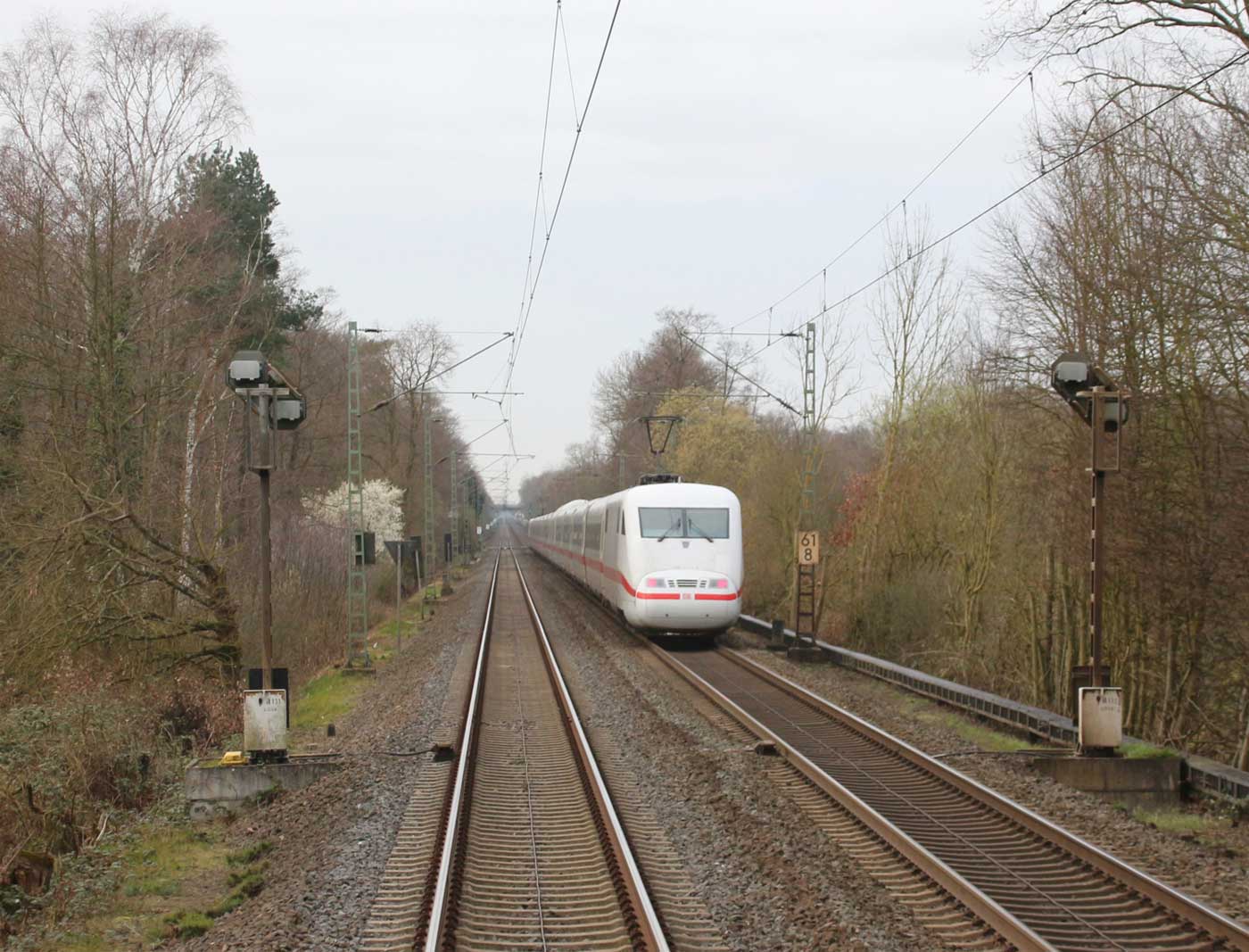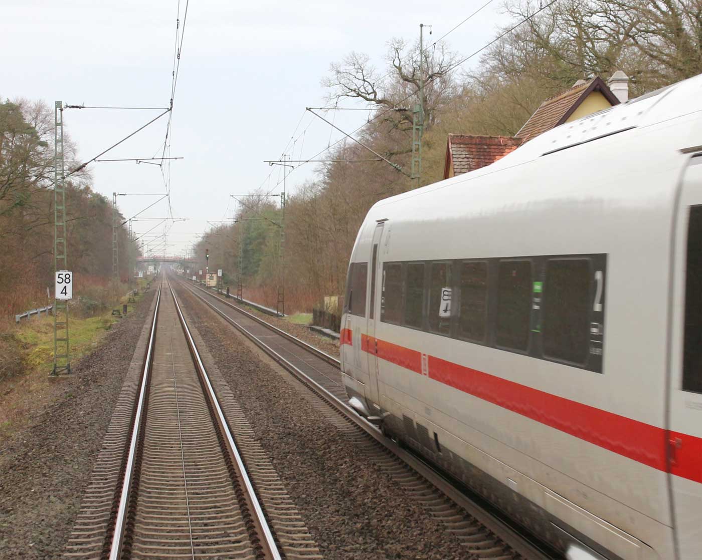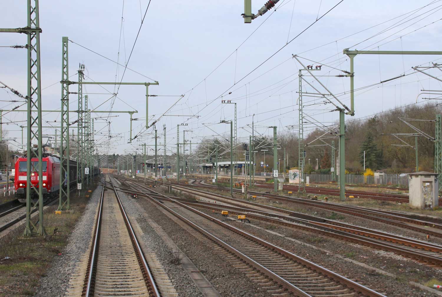 bei km 74,6 zwischen Zeppelinheim und Frankfurt am Main Stadion - Blick Richtung Mannheim