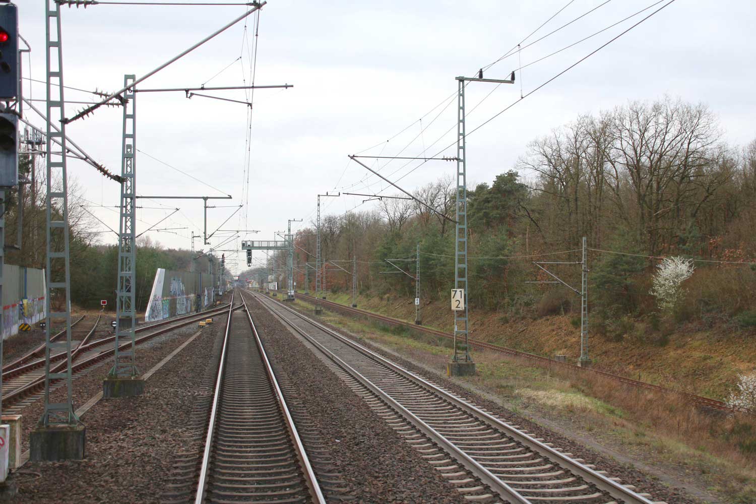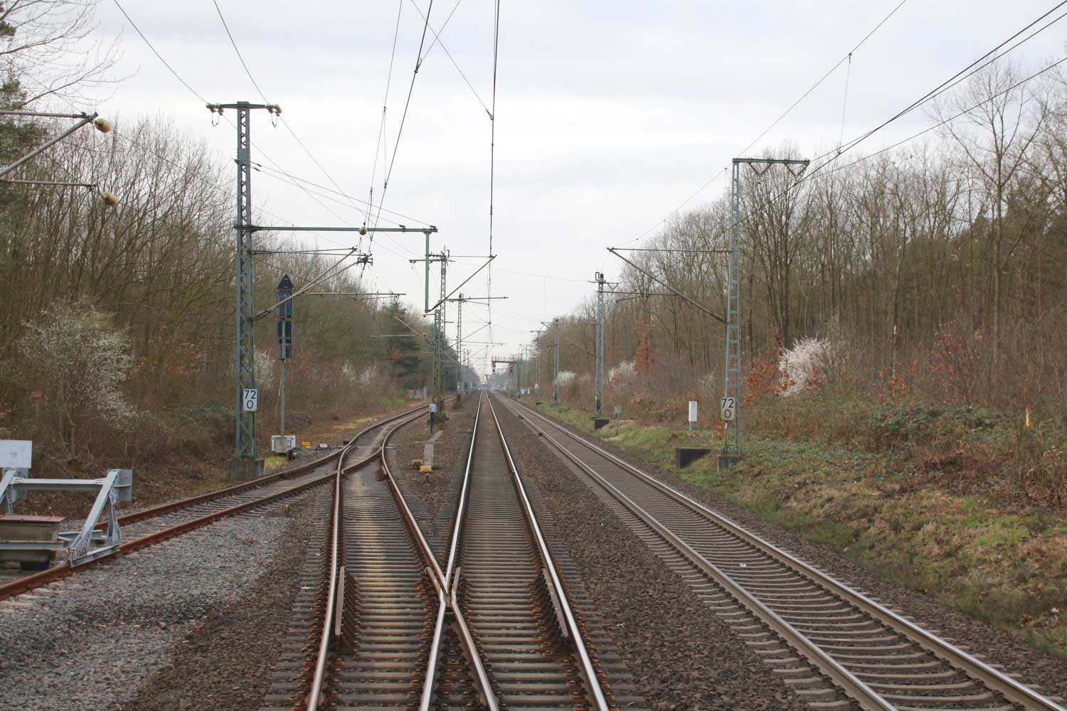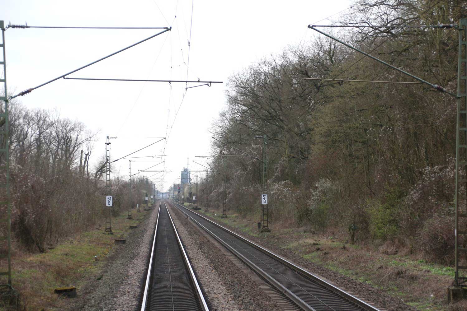 bei km 73,6 zwischen Zeppelinheim und Frankfurt am Main Stadion - Blick Richtung Mannheim