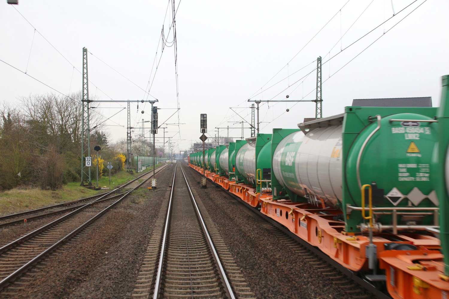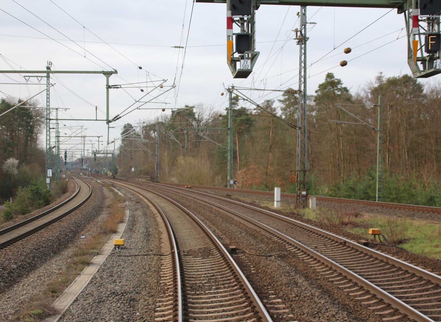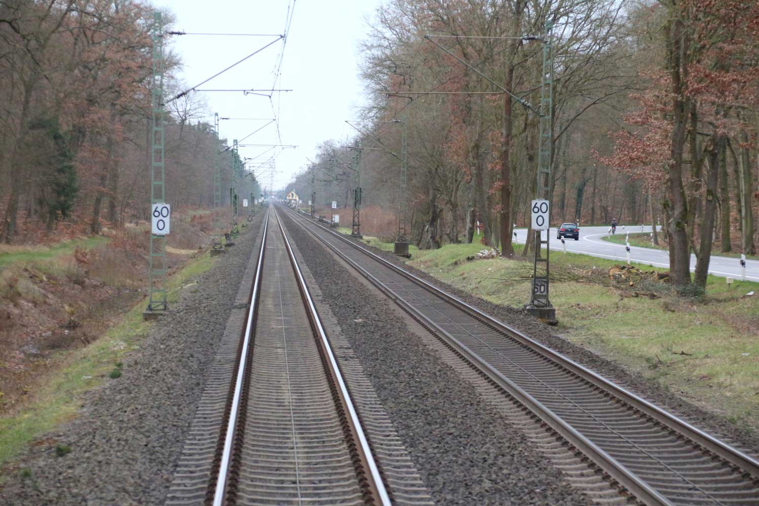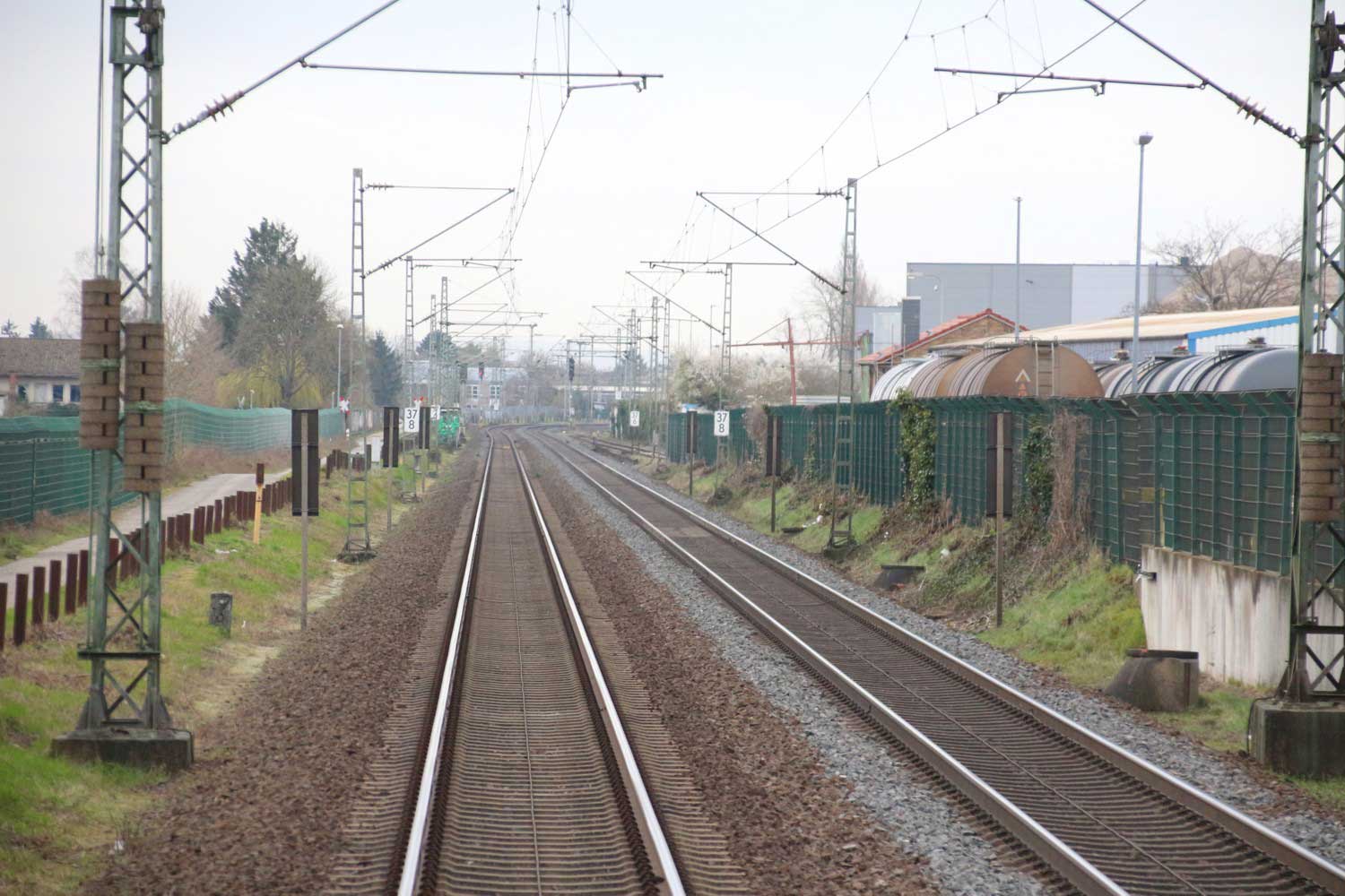 bei km 73,6 zwischen Zeppelinheim und Frankfurt am Main Stadion - Blick Richtung Mannheim