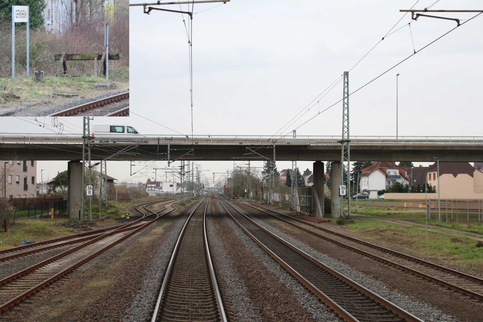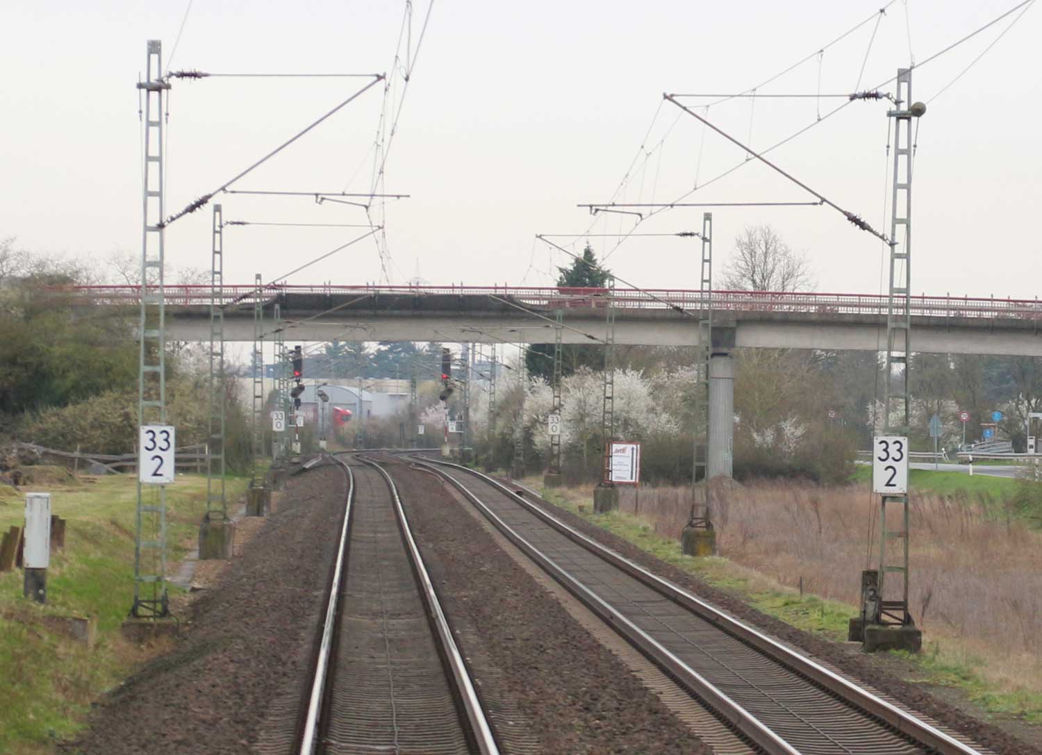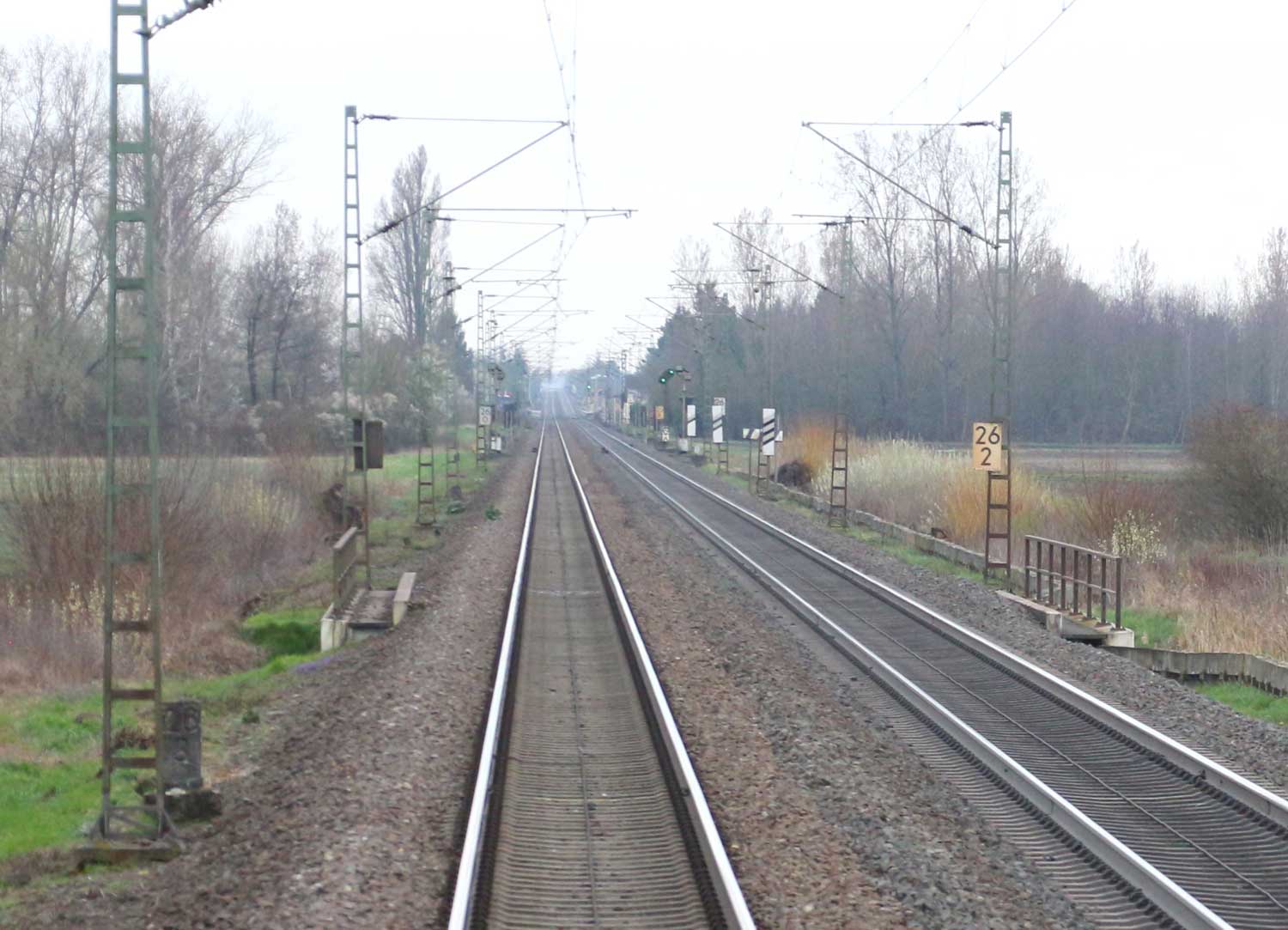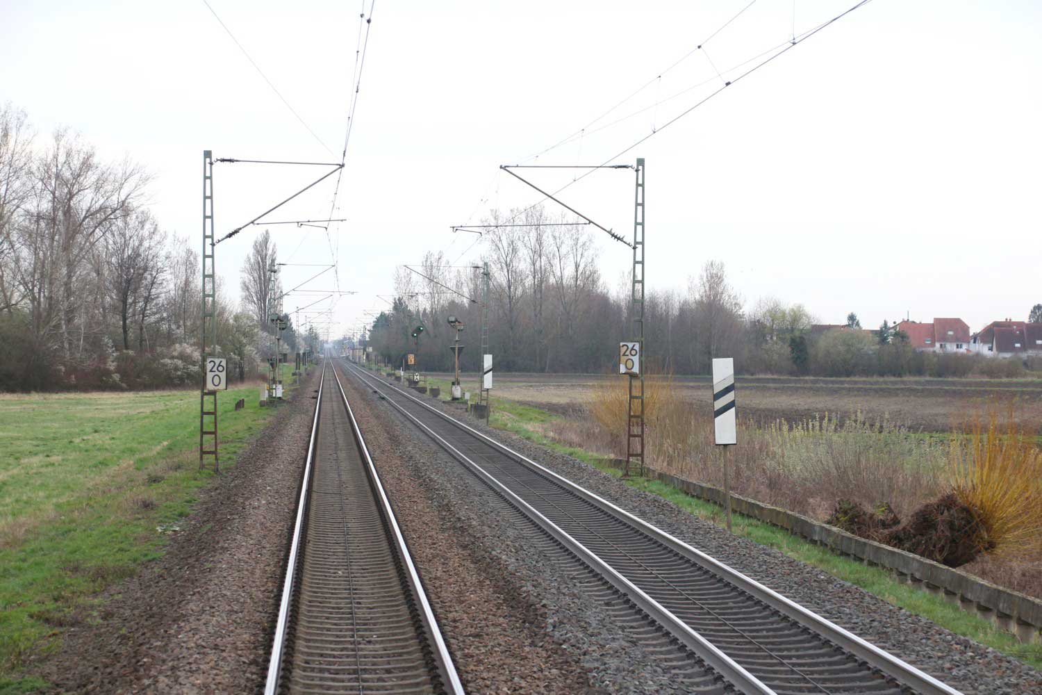 km 55,9 in Groß Gerau - Blick Richtung Groß Gerau-Dornberg - Mannheim (nach rechts)