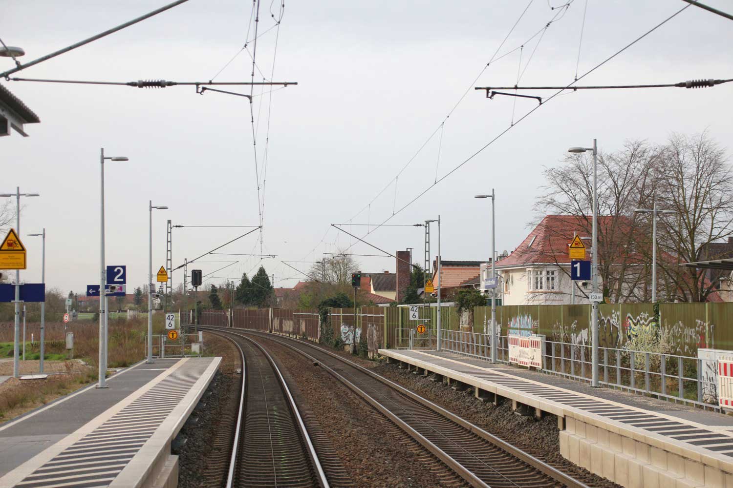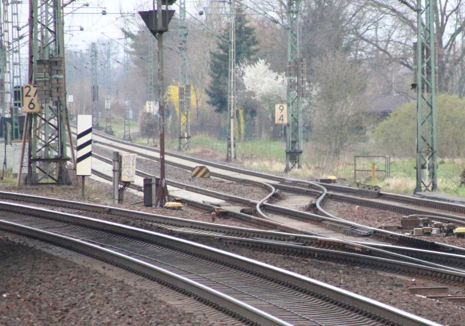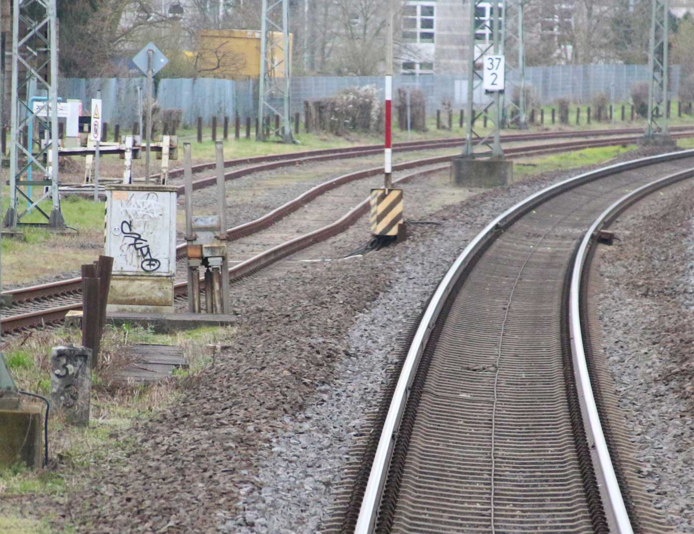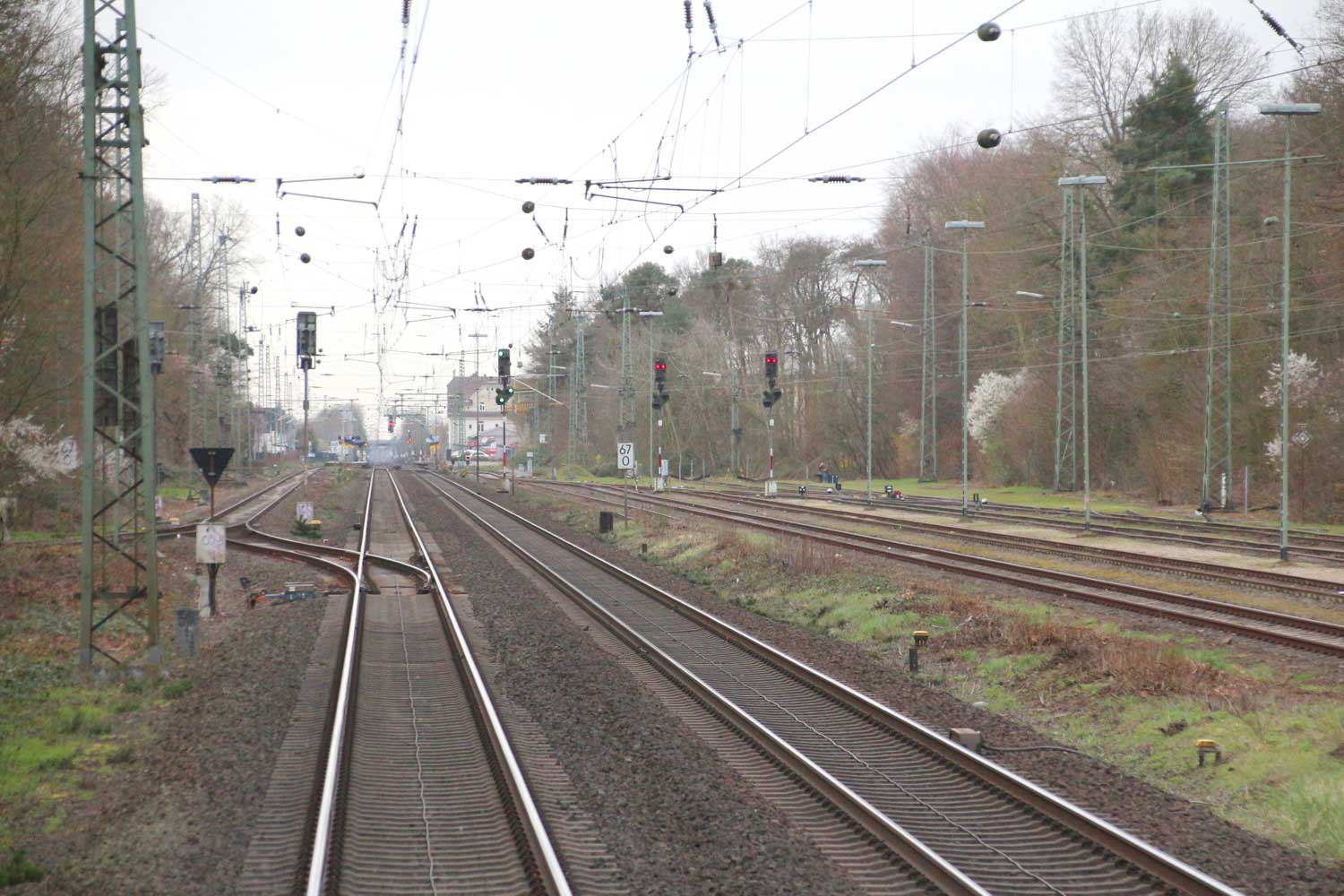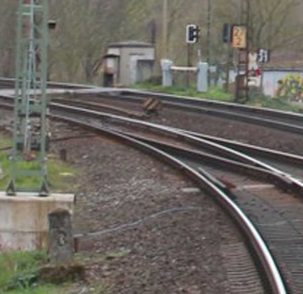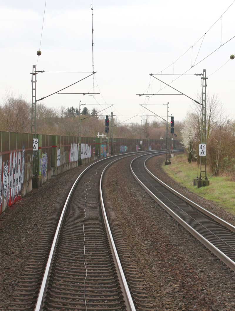 von rechts unten das Gegenrichtungsgleis der Strecke