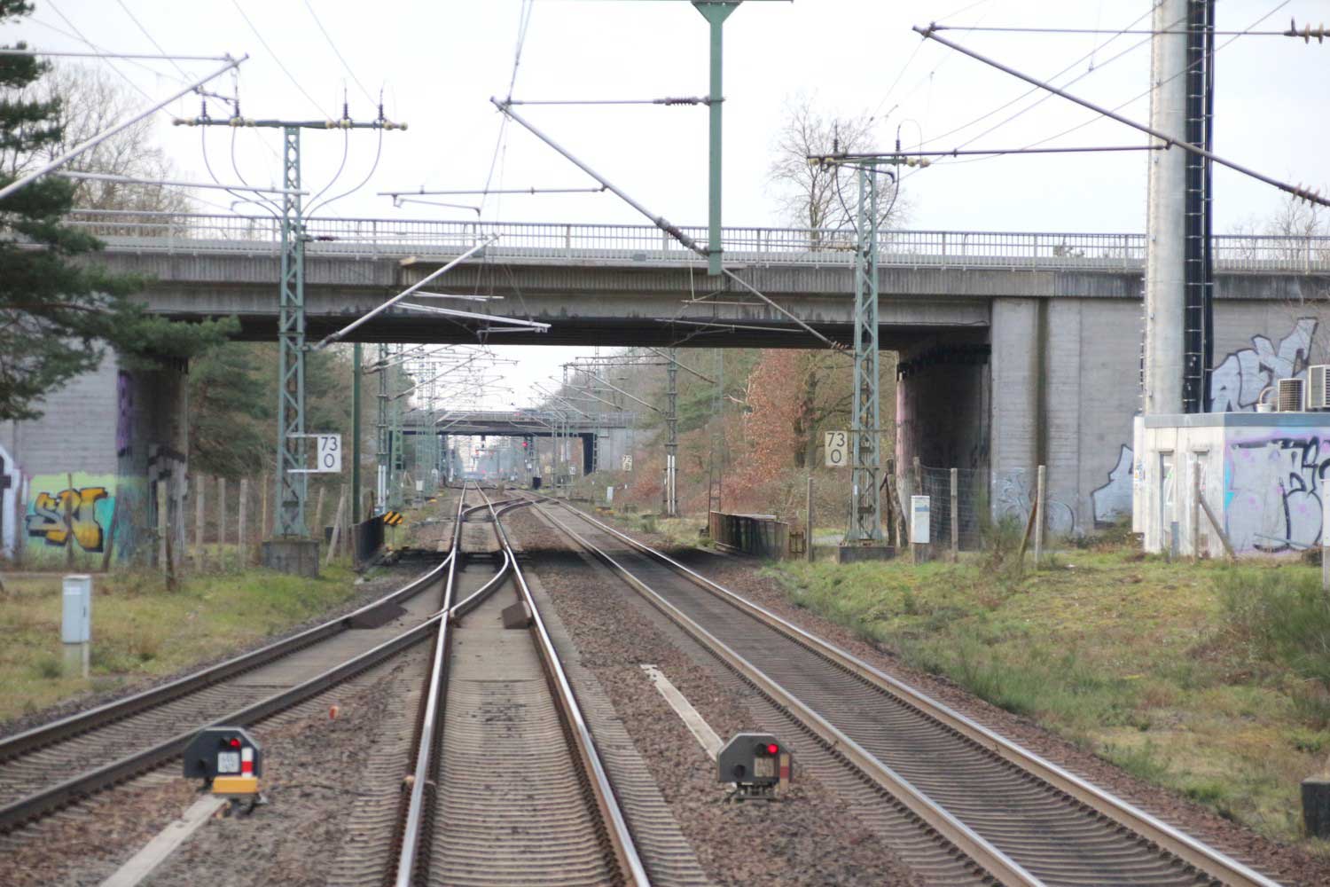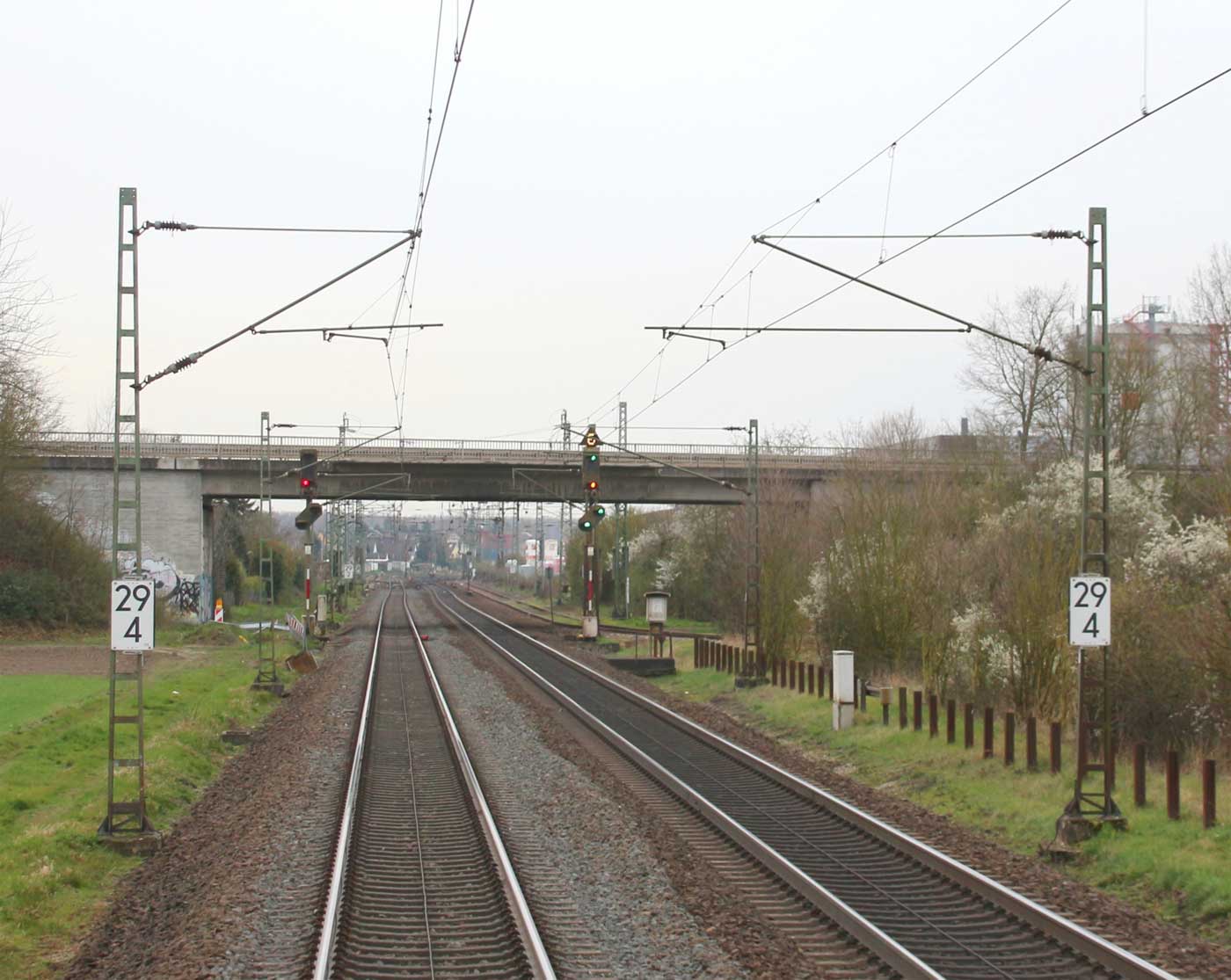km 73,6 zwischen Zeppelinheim und Frankfurt am Main Stadion - Blick Richtung Frankfurt am Main Stadion