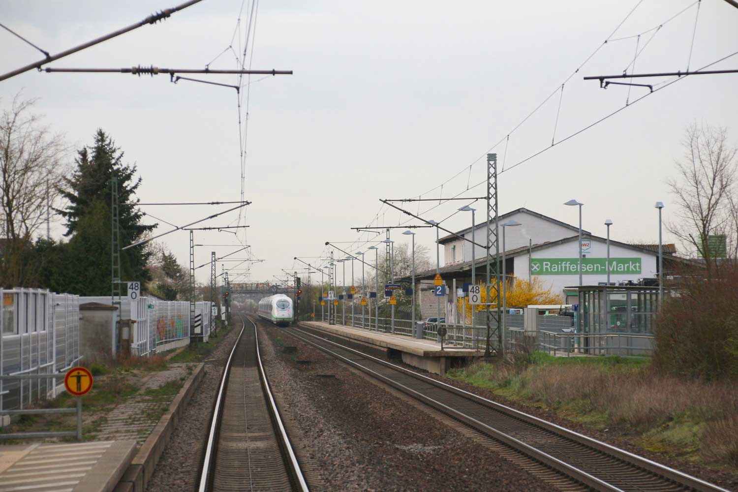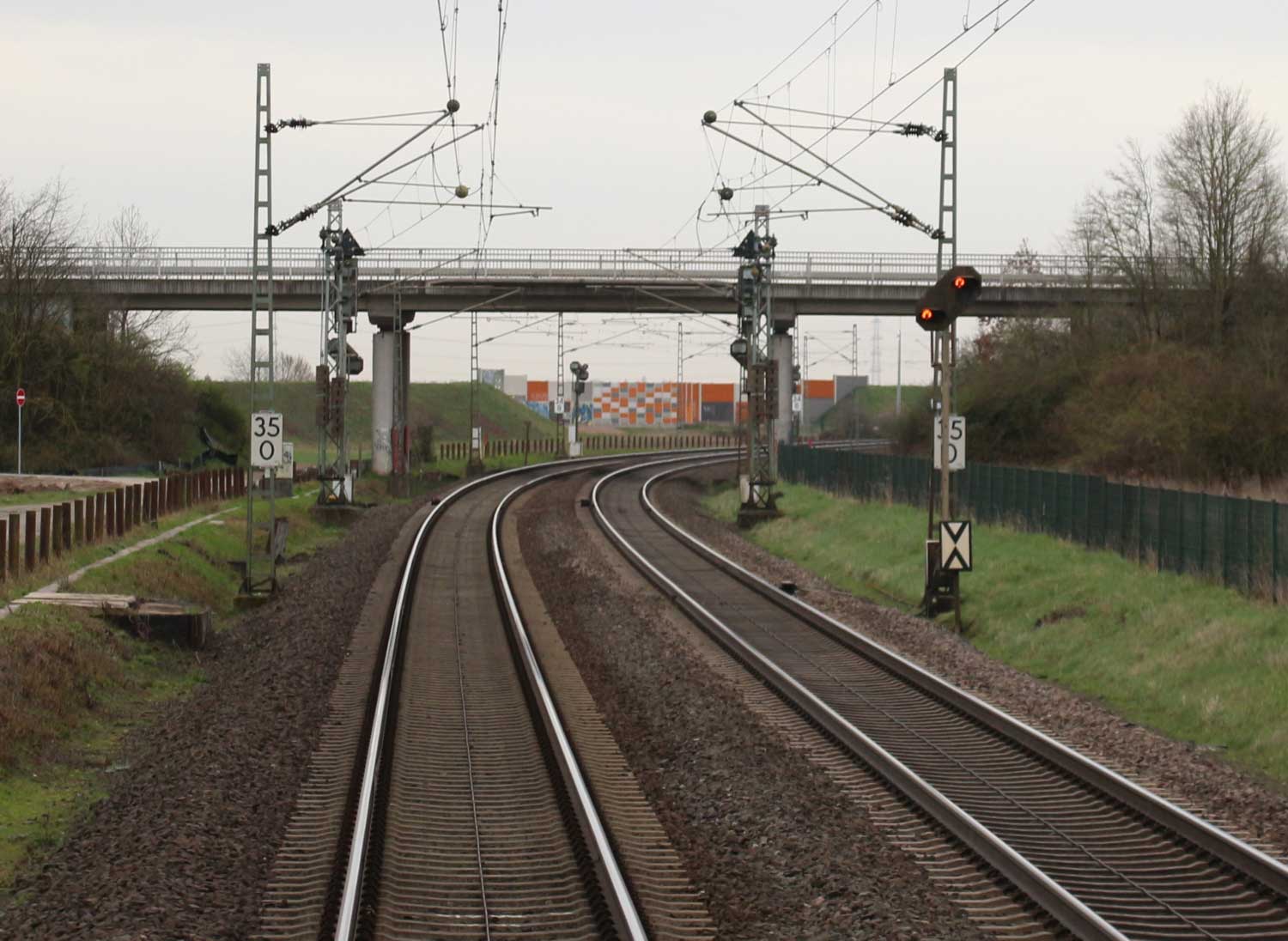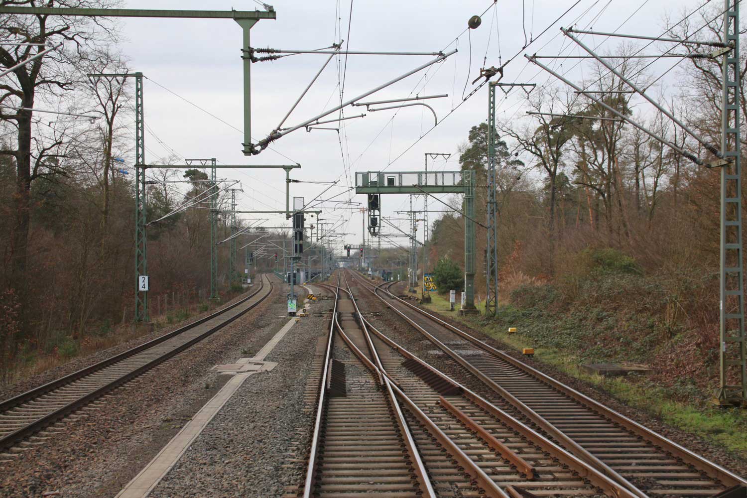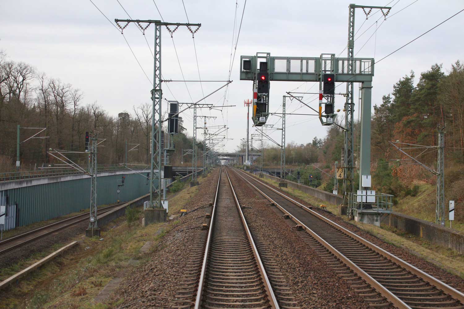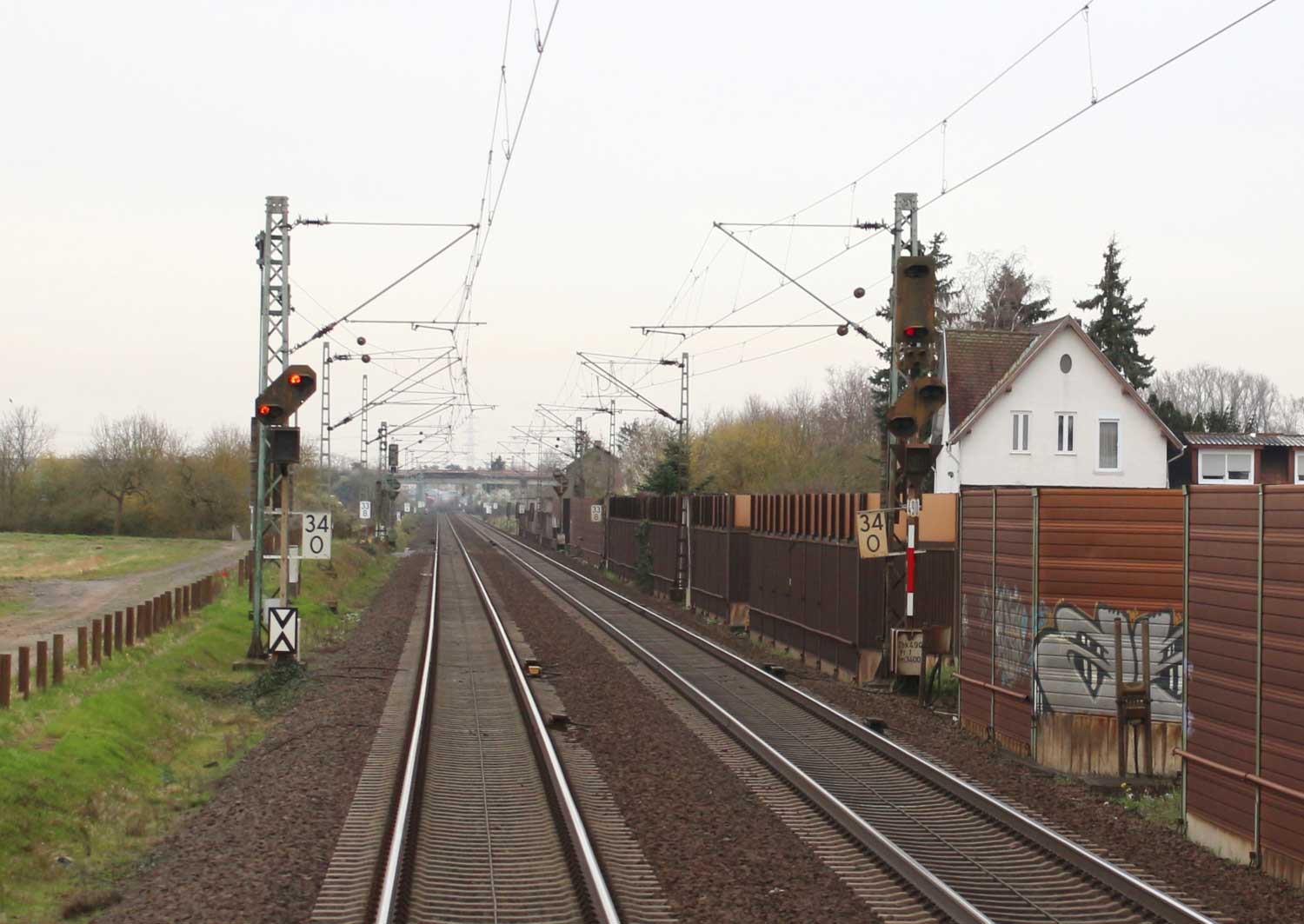 bei km 74,4 zwischen Zeppelinheim und Frankfurt am Main Stadion - Blick Richtung Mannheim