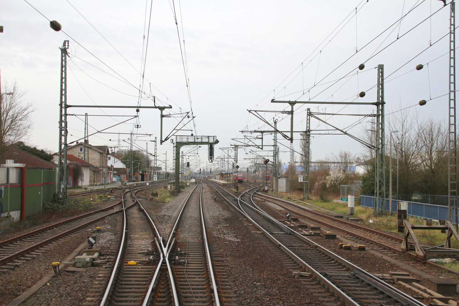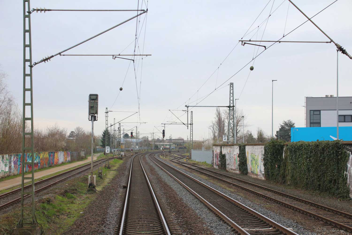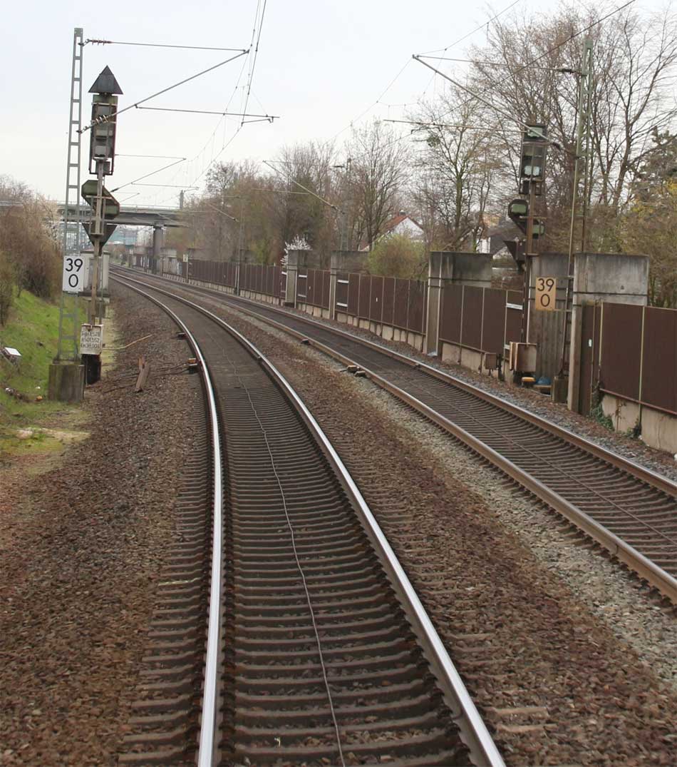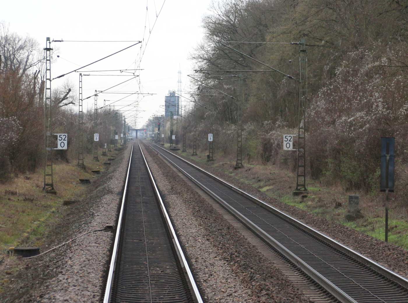km 9,4 (rechte Gleise) in Mannheim-Waldhof - Blick Richtung Frankfurt