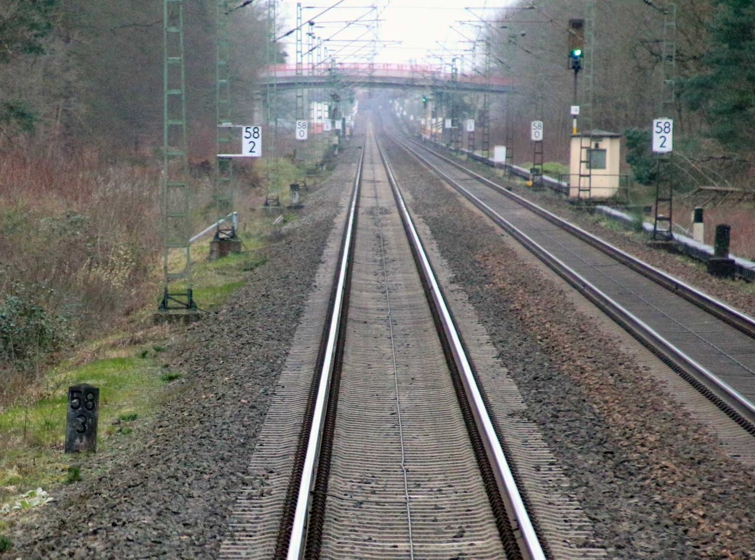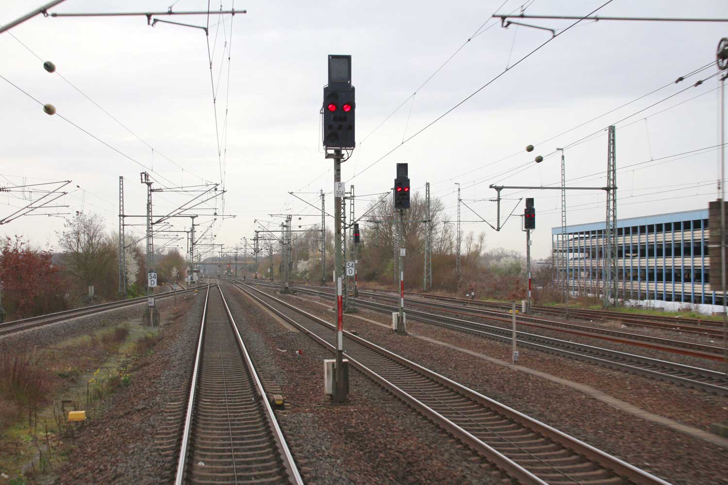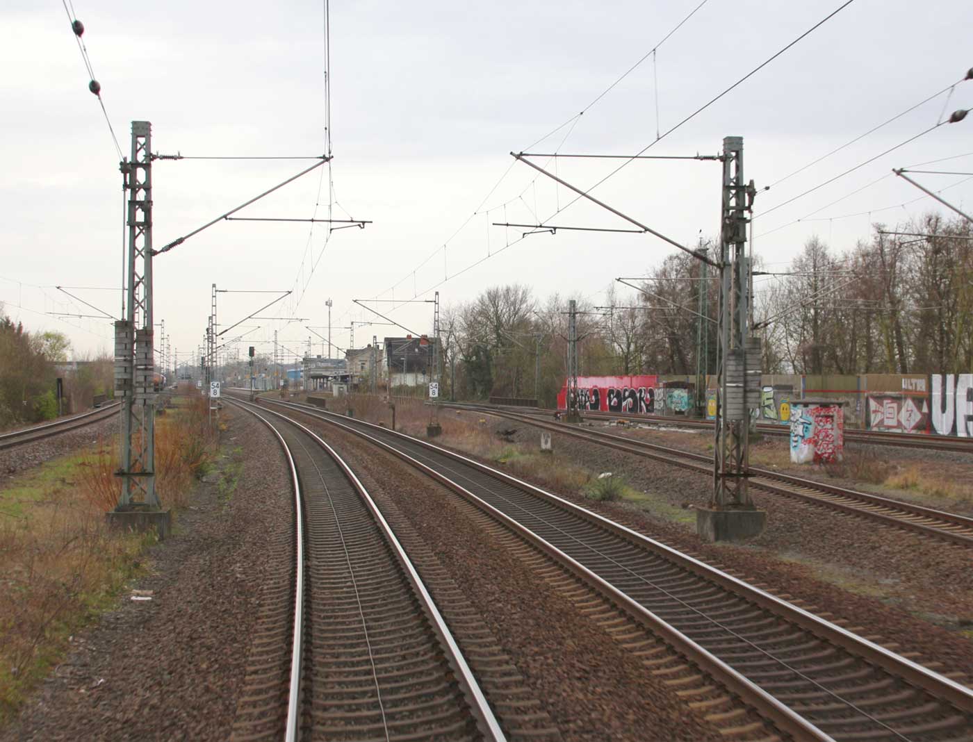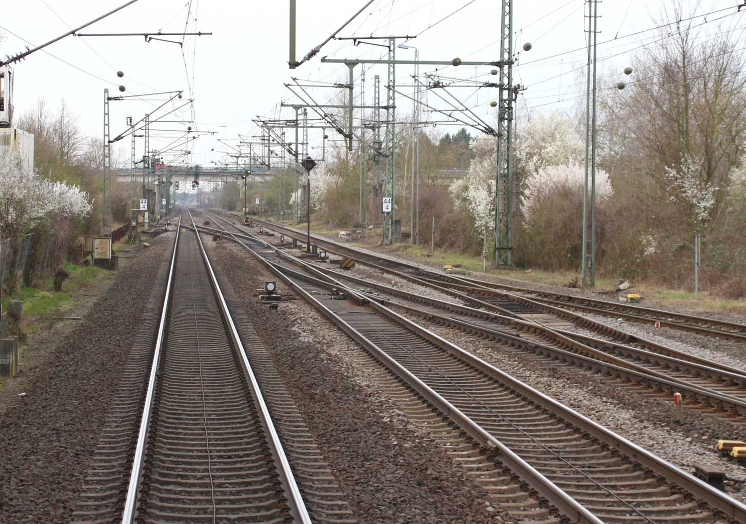 km 9,4 (rechte Gleise) in Mannheim-Waldhof - Blick Richtung Frankfurt