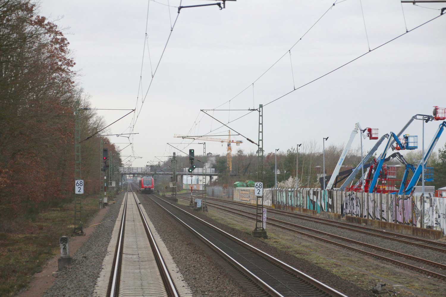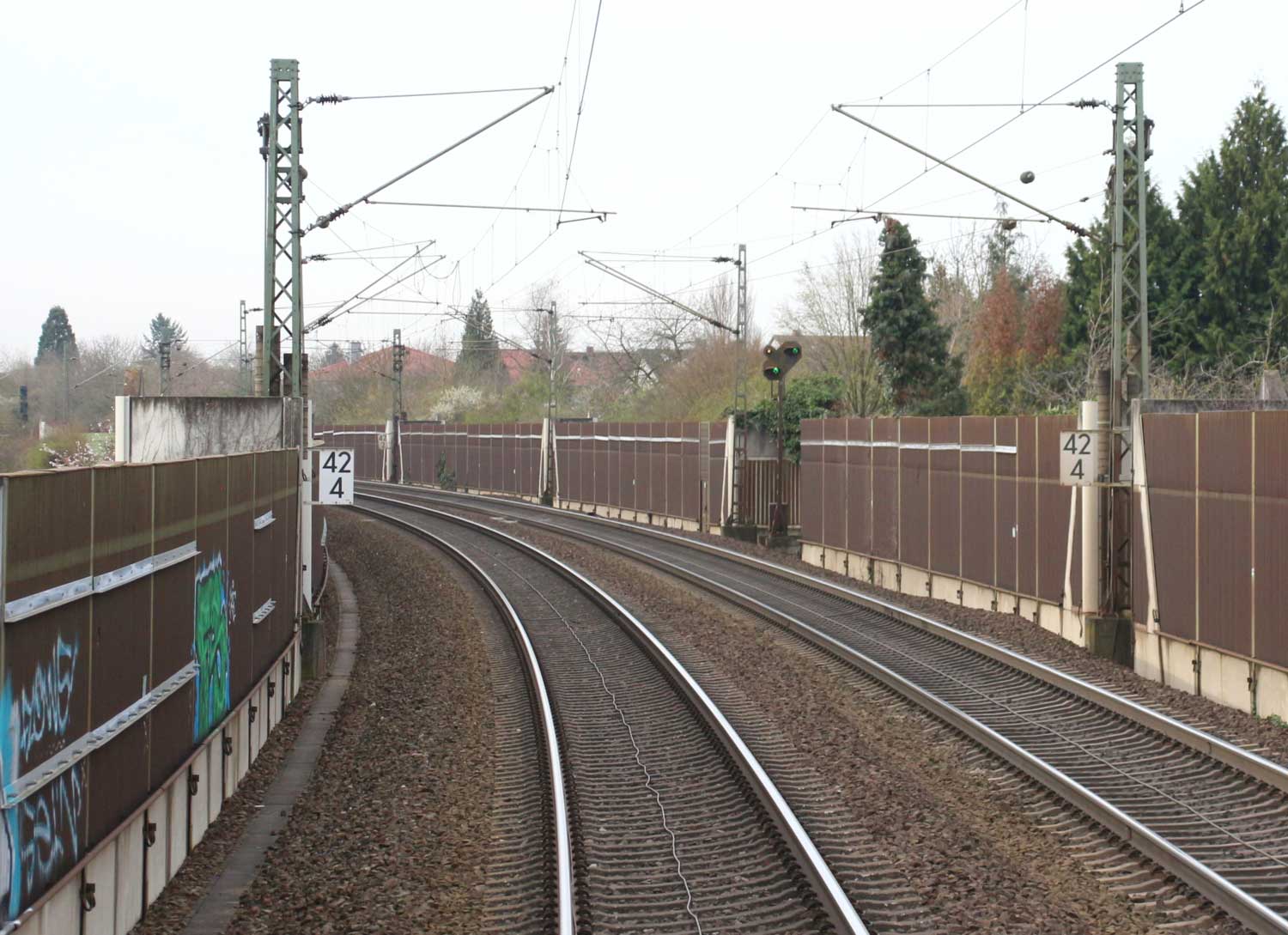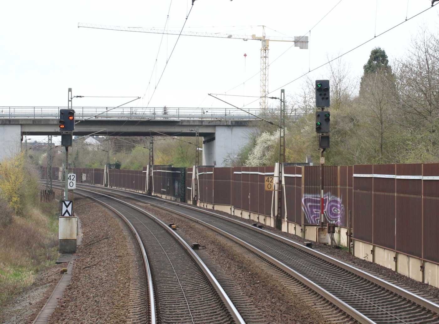 bei km 74,2 zwischen Zeppelinheim und Frankfurt am Main Stadion - Blick Richtung Mannheim
