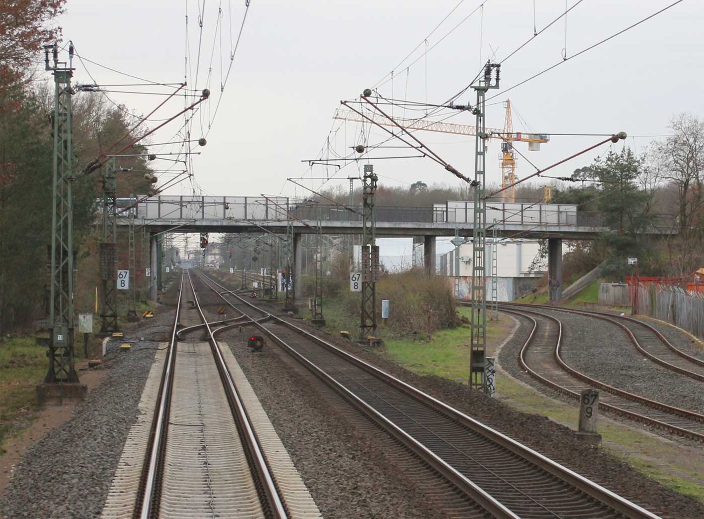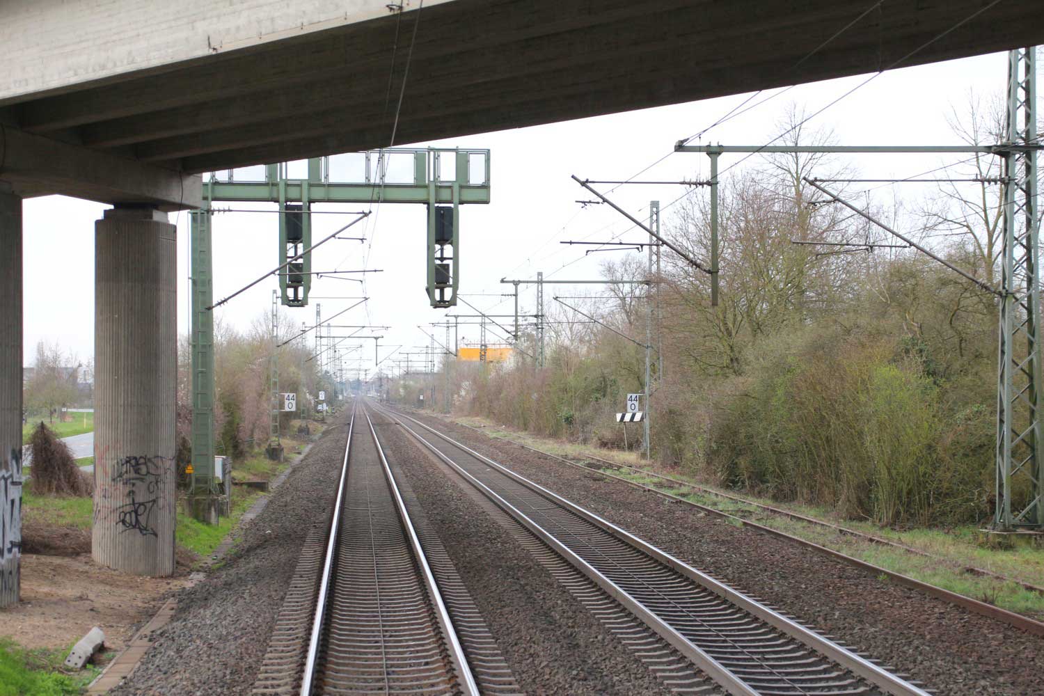bei km 73,7 zwischen Zeppelinheim und Frankfurt am Main Stadion - Blick Richtung Mannheim