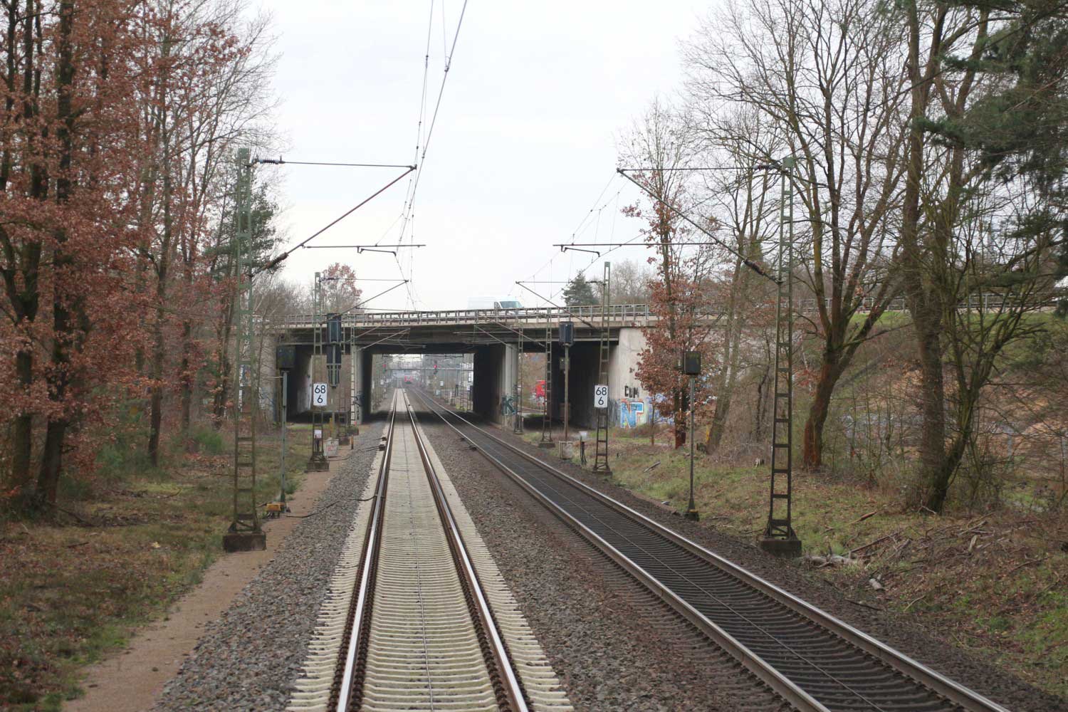 km 74,6 zwischen Zeppelinheim und Frankfurt am Main Stadion - Blick Richtung Mannheim