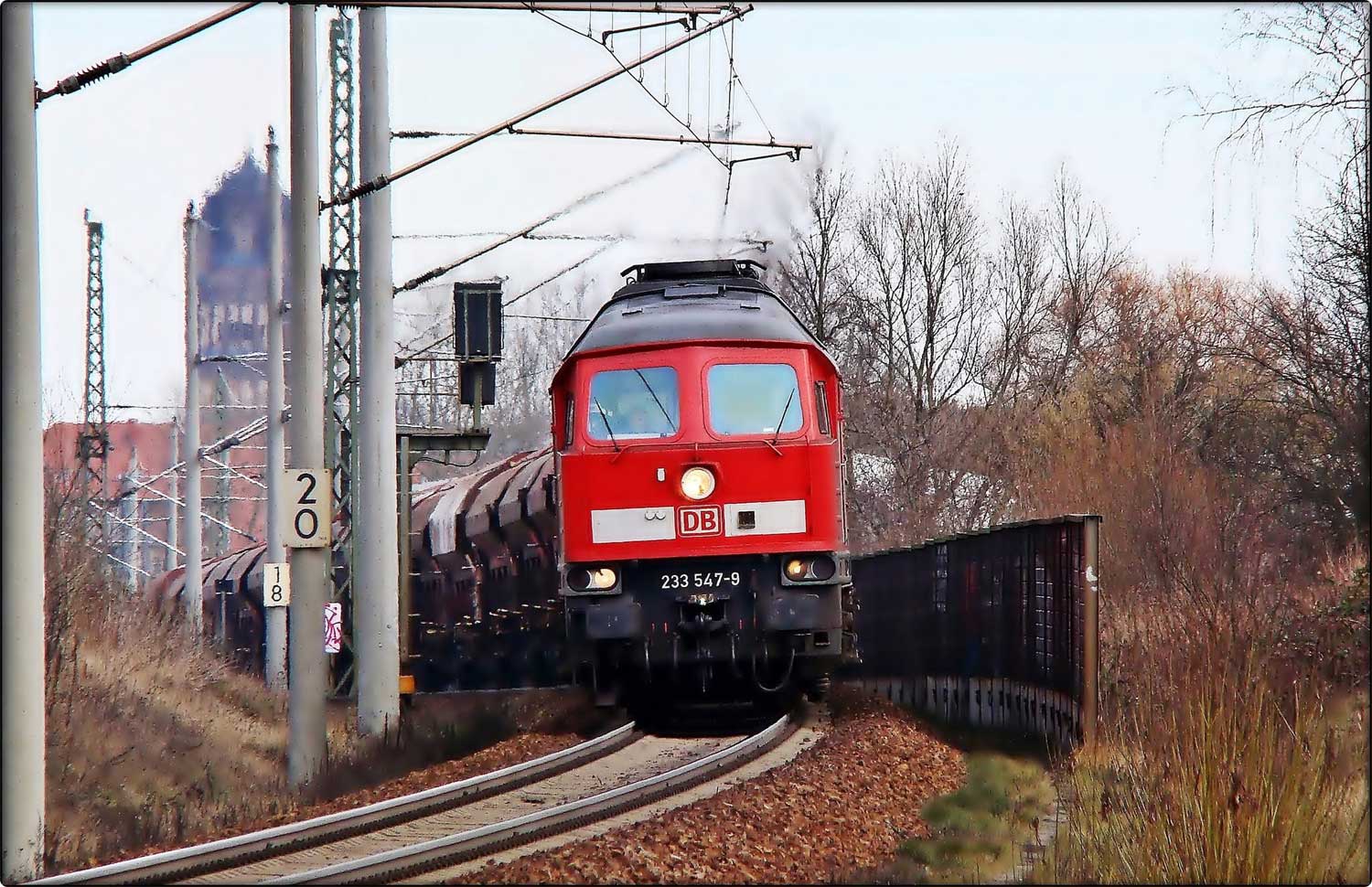km 1,2 (Tafel und Stein) gehört zur Strecke Abzw Riekdahl, W 1 km 0,87 - Rostock Seehafen Nord km 9,228 (6443)