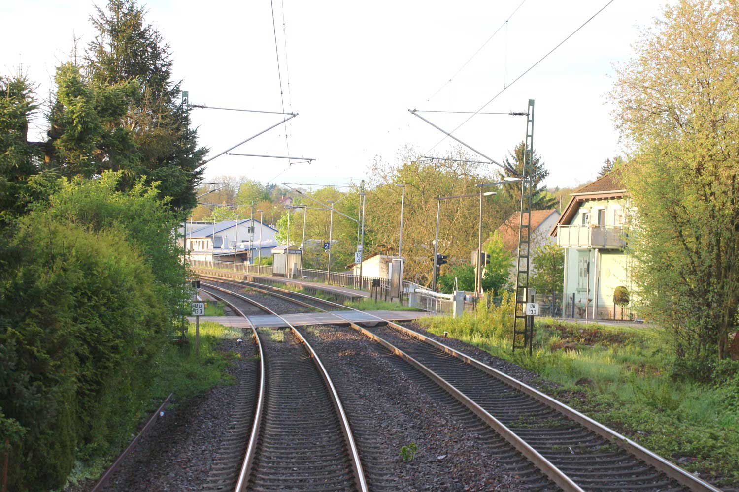 BÜ km 13,3 und km 13,4 in Bretten - Blick Richtung Kilometer-/Streckenwechsel - (Stuttgart)