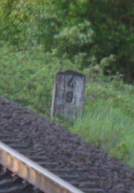 Der Stein in der Mitte mit km -0,0 (genau -0,079) kennzeichnet den Beginn der Strecke nach Rohrbach