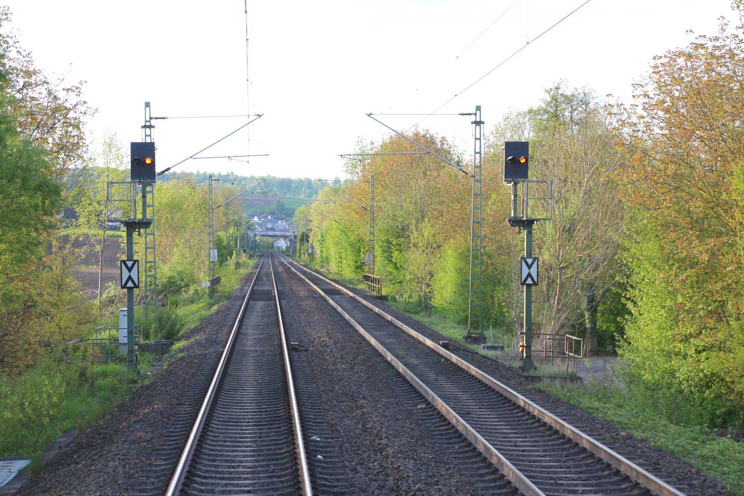 km 0,95 des Güterzuggleises Bruchsal -2,06 - Abzw Ruhstein 0,95 | ||