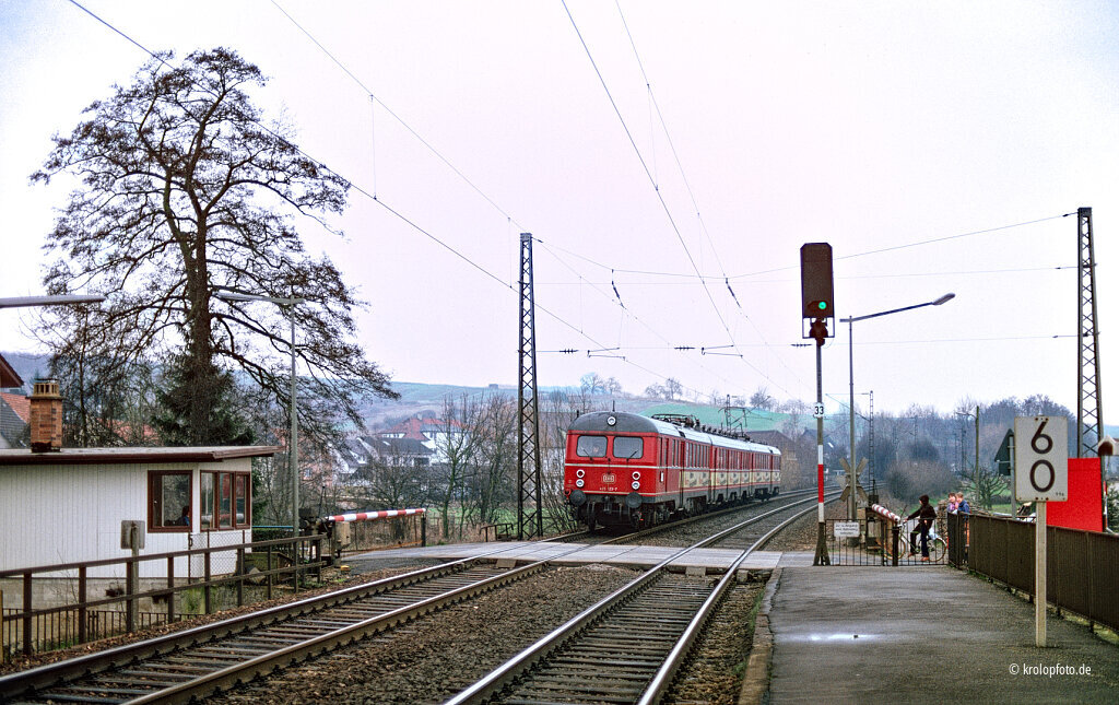 km -0,08 der Strecke Bruchsal -0,08 - Graben-Neudorf 9,4 + 209 m - ehemalige Landesgrenze Baden/Pfalz km 22,05 = km 0,0 - [Germersheim 3,54 - Streckenunterbrechung - Landau (Pfalz) Hbf 24,51 - Pirmasens Nord 72,27 - Zweibrücken 96,34 - Rohrbach (Saar) 116,06 (siehe auch Tabelle 4, Ziffer 5)] (4132) | ||