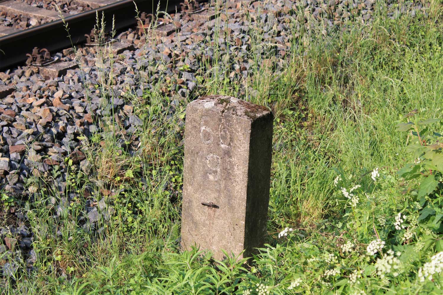 km 68,0 (Tafel und Stein) nahe der ehemaligen Bk Bergholz - Blick Richtung Blankenheim Trennungsbf