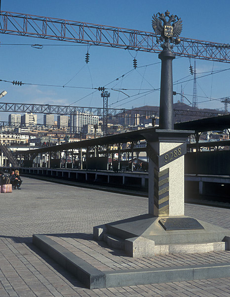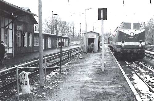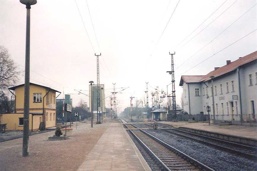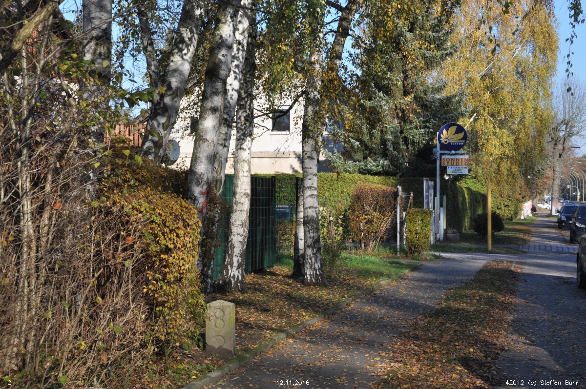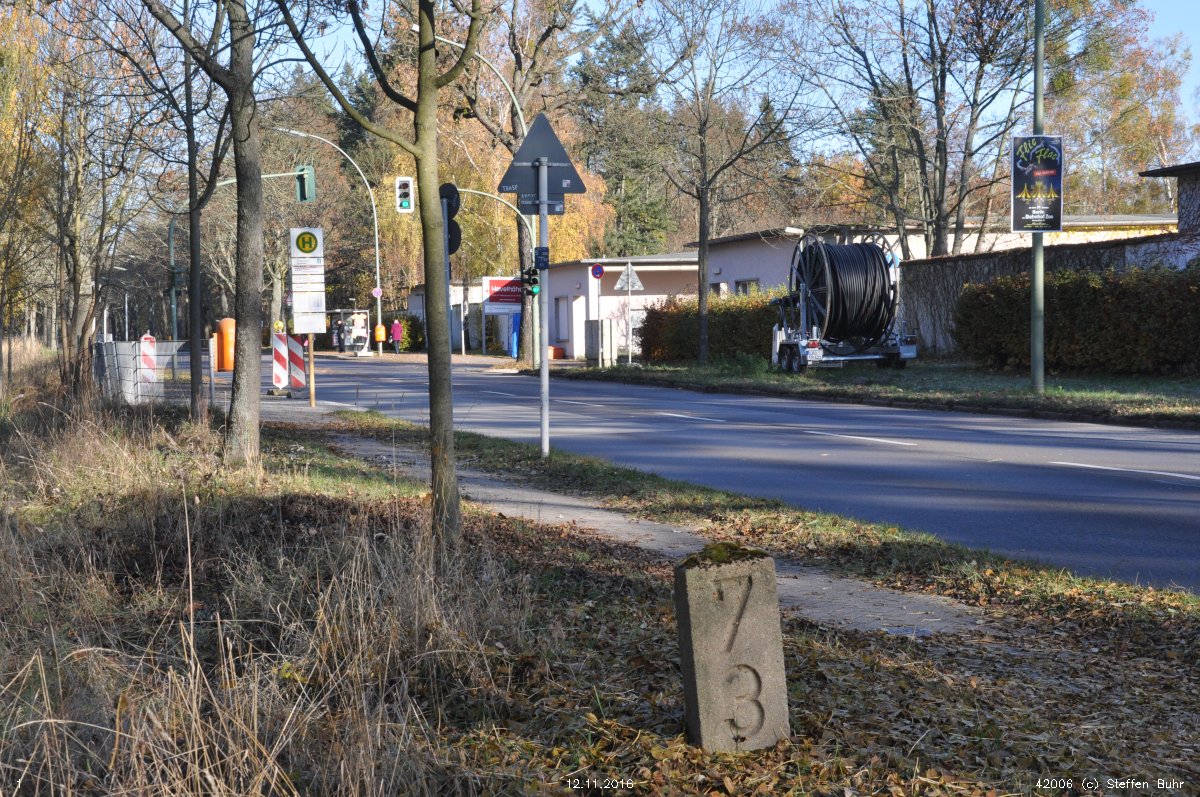 Bf Nauen Der Stein steht auf der Nordseite des Bahnhofs. Die Null