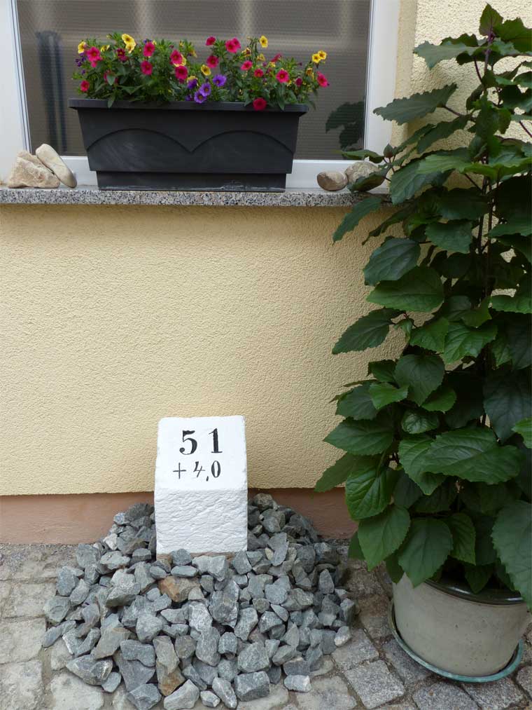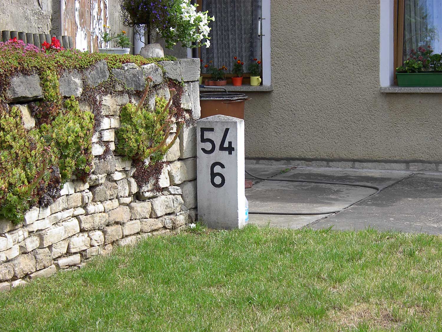 Kilometerstein 54,6 im Vorgarten in Bad Kösen