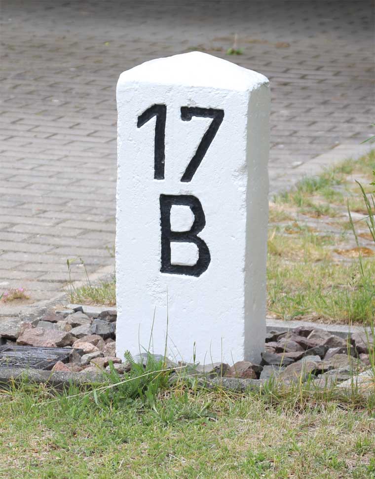 Kilometerstein als Hausnummer 17B bei Angermünde