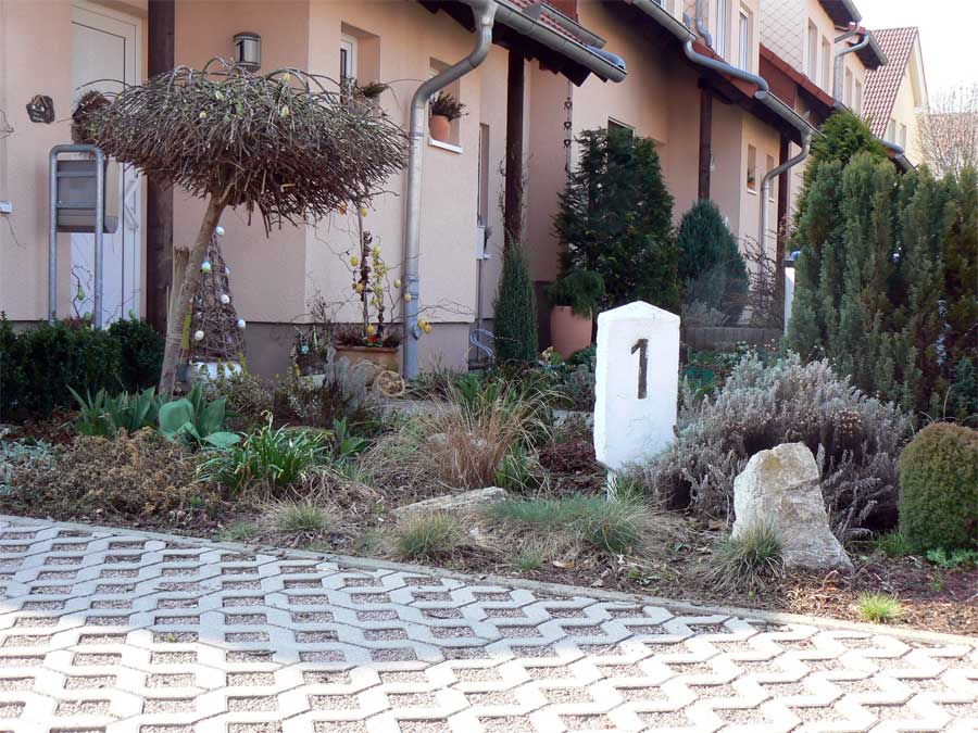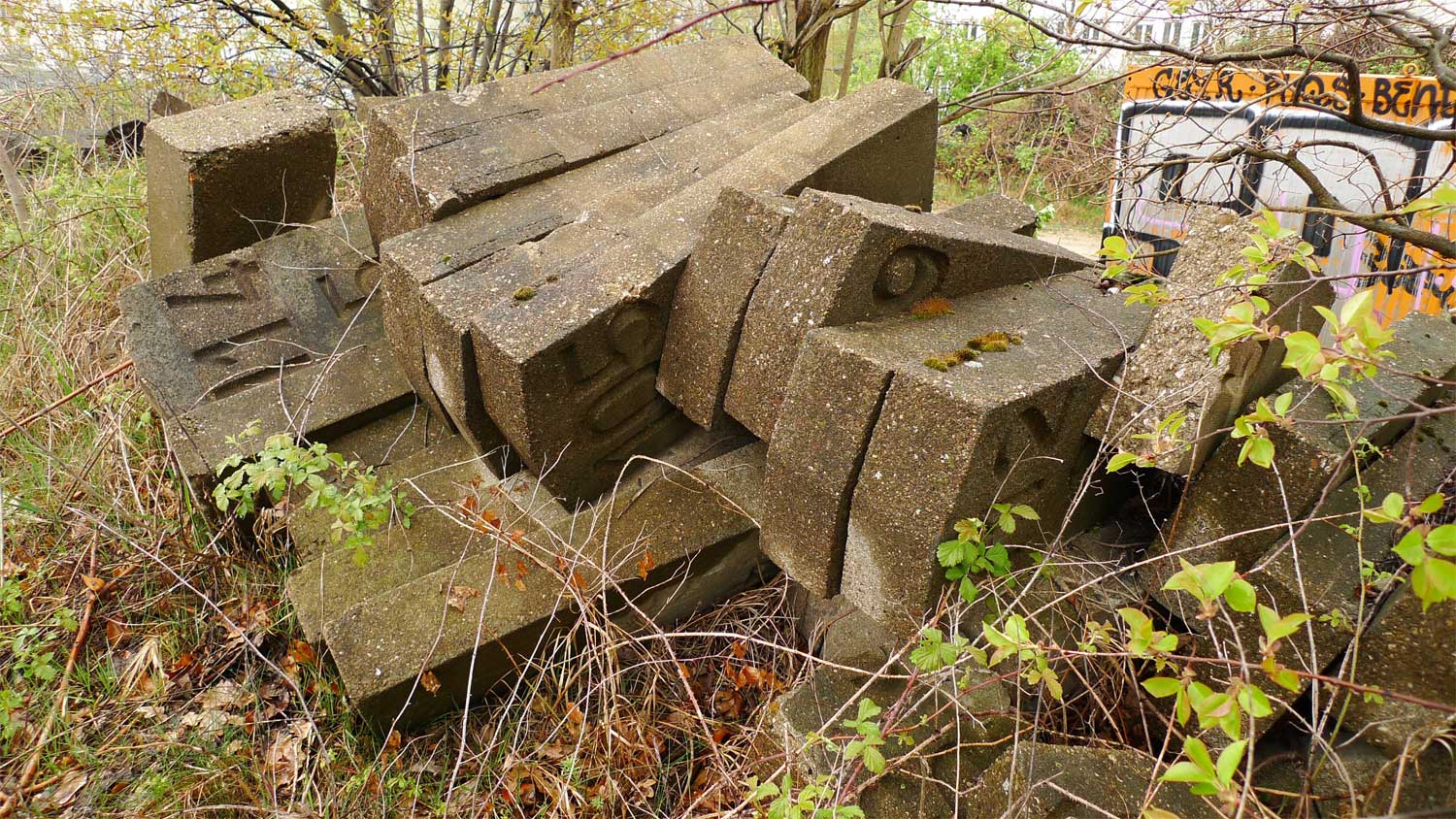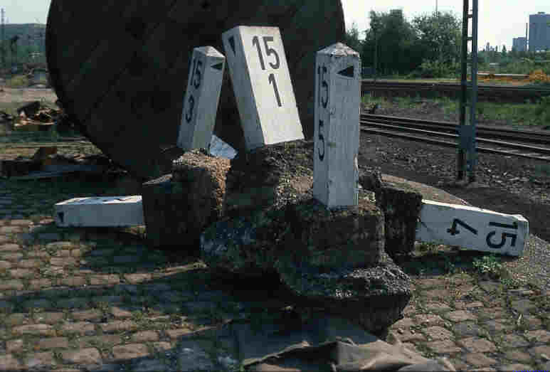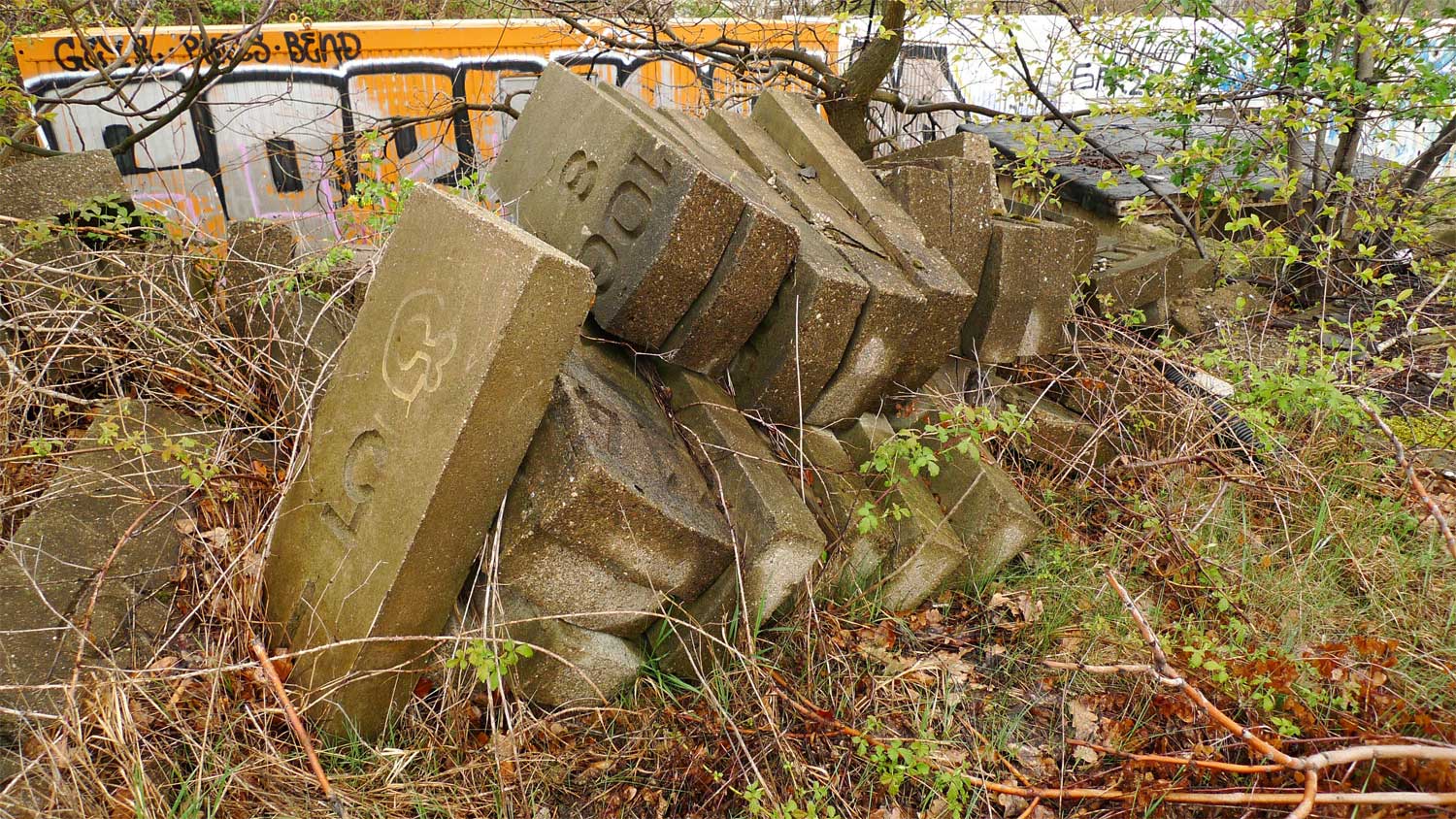 Im Bereich Erfurt Gbf aufgestellte Steine zur Abtrennung zwischen Reihengaragen