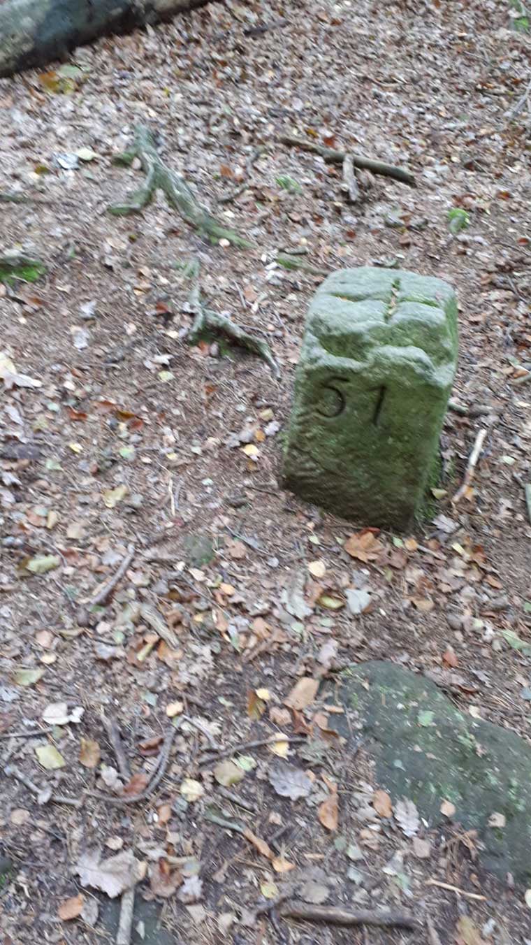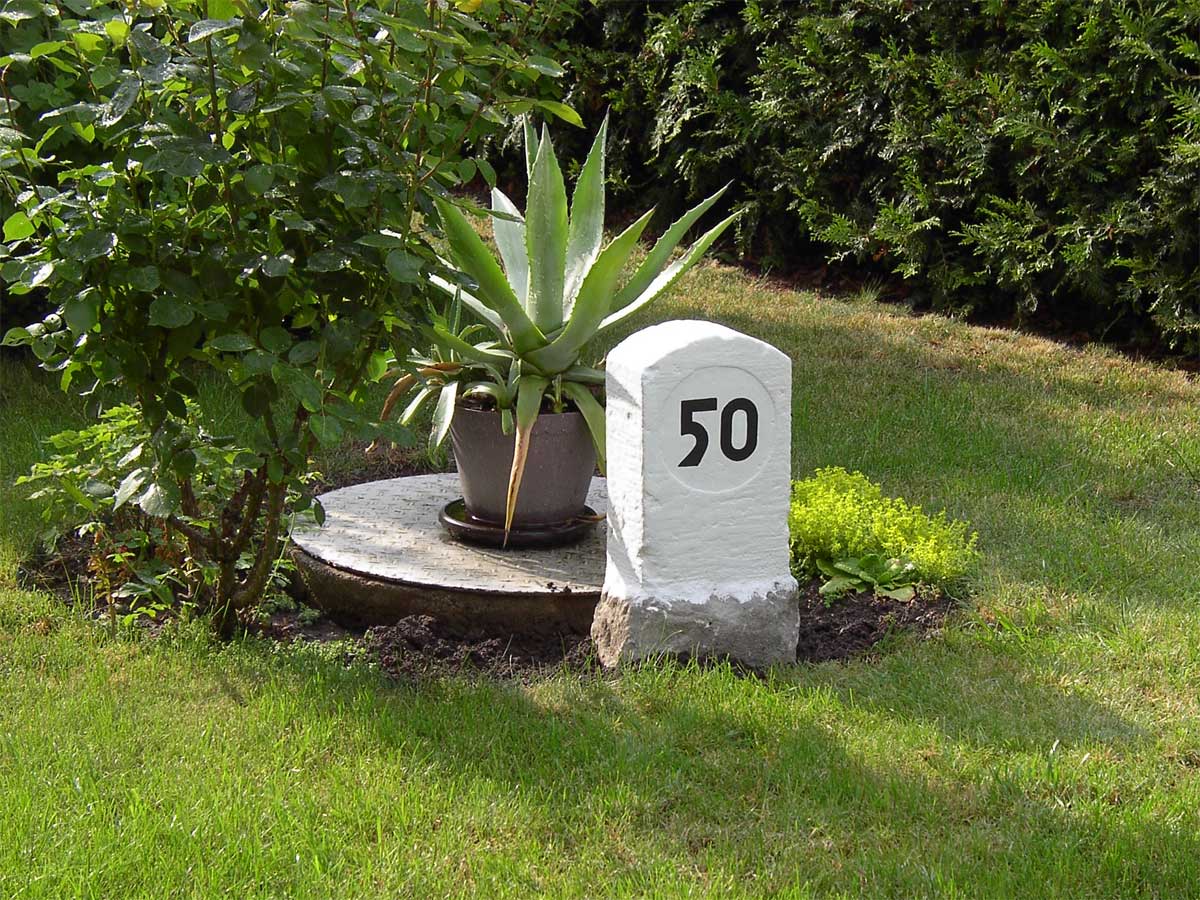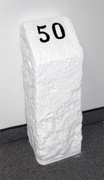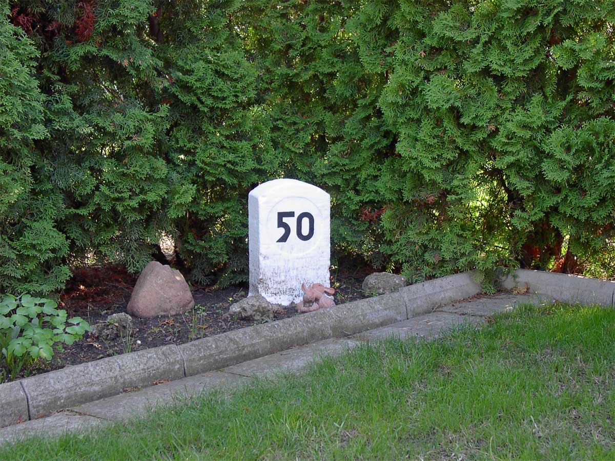 Hektometer 50 Dieser Stein wurde zur Erinnerung an den 50. Geburtstag eines Kollegen in einer Behörde aufgestellt. (27.02.2005) |