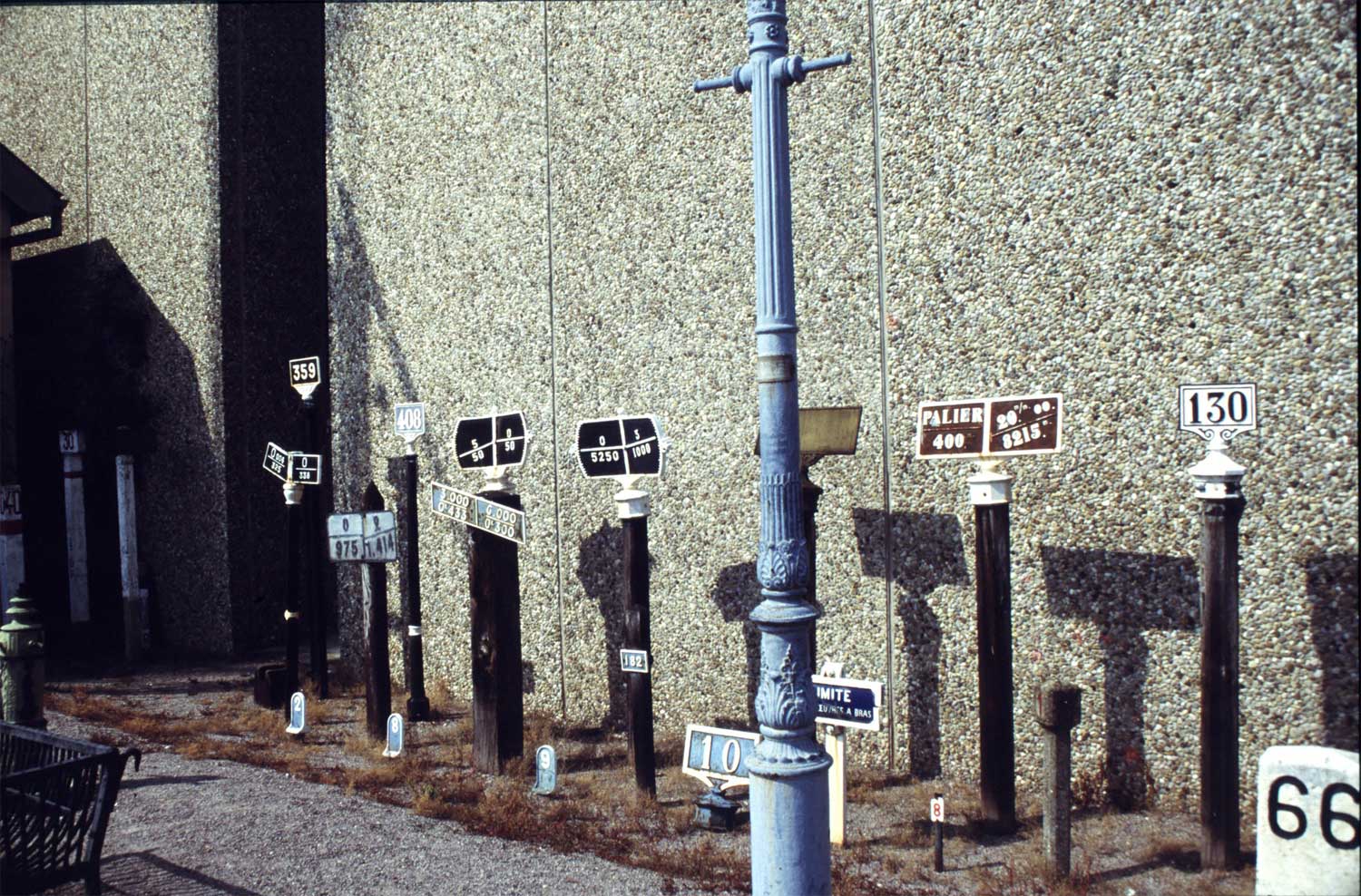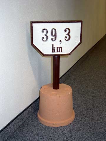 Die km-Tafel der M.F.F.E. ist heute in einer Behörde ausgestellt.
