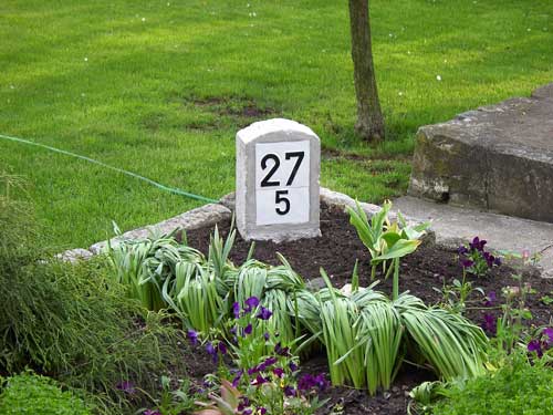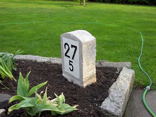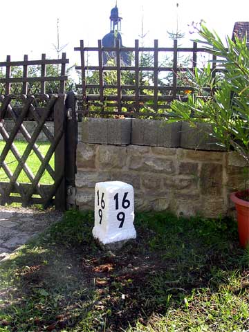 Kilometerstein vor einem Haus in Haarhausen (Oktober 2004) |