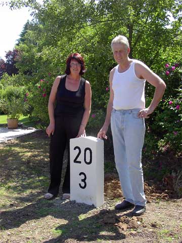 km 20,3 Dieser Stein sollte am 20.03.2005 in Körle (Hessen) aufgestellt und soll an den Tag der Hochzeit vor 25 Jahren erinnern. Leider ist die Feier wegen Krankheit ausgefallen, wird aber nachgeholt. (März 2005) |