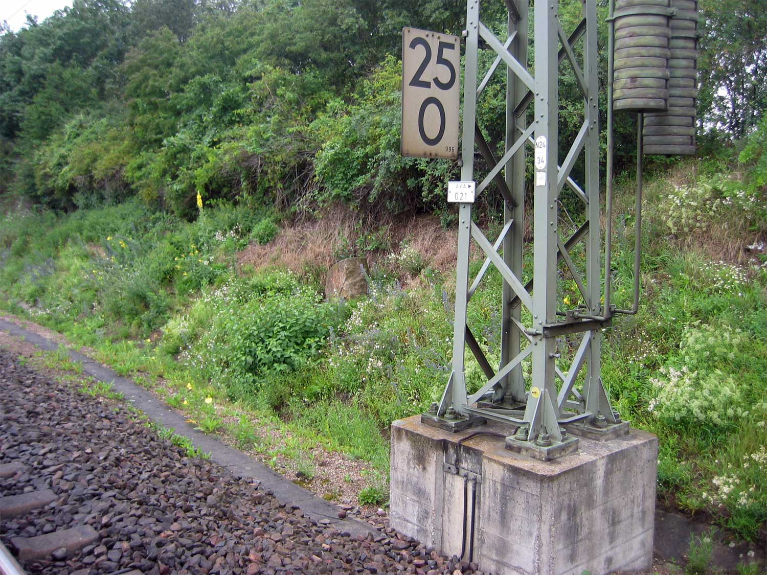 Unmittelbar vor dem Vorsignal 38 und DR eine Kabelmerksäule |