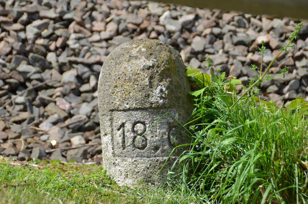 Der Stein (km 20,4) stammt von der Strecke Ballstädt -