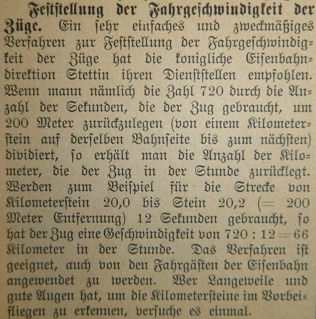 Zeitungsartikel über die Fahrgeschwindigkeit