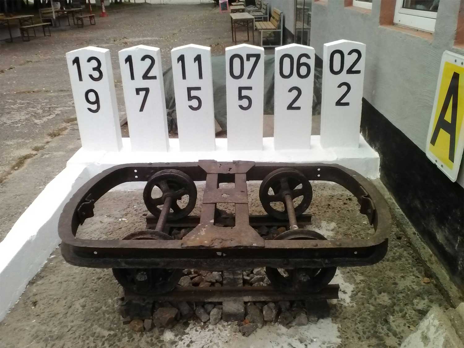 Hektometerzeichen aus Gusseisen von der M.F.F.E. (wird noch restauriert) |
