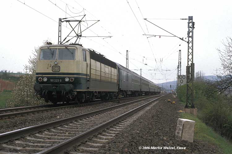 Strecke Koblenz - Trier - Perl Grenze km 100,0 bei der Ortschaft Schweich (Foto: Martin Welzel, 24.04.1982)