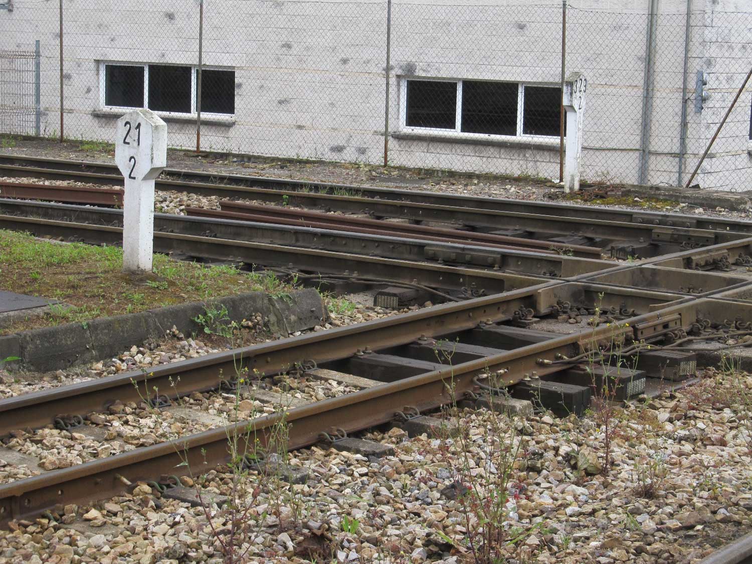 Schmalspurkreuzung in Estació el berrón (Spanien)