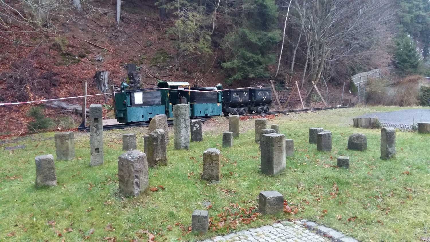 Härtsfeldbahnmuseum in Neresheim mit diversen geretteten Steinen der Strecke