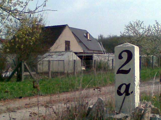 Kilometerstein als Hausnummer in Sülzenbrücken (Foto: Michael Schiecke, April 2009) |