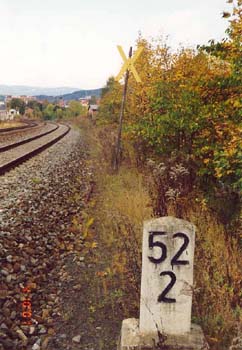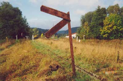 km 52,2 - im Bereich des Bahnhofes Suhl Strecke: Neudietendorf - Ritschenhausen (man beachte das Signal im Hintergrund) (Foto: Frank Poppe 2001) |
