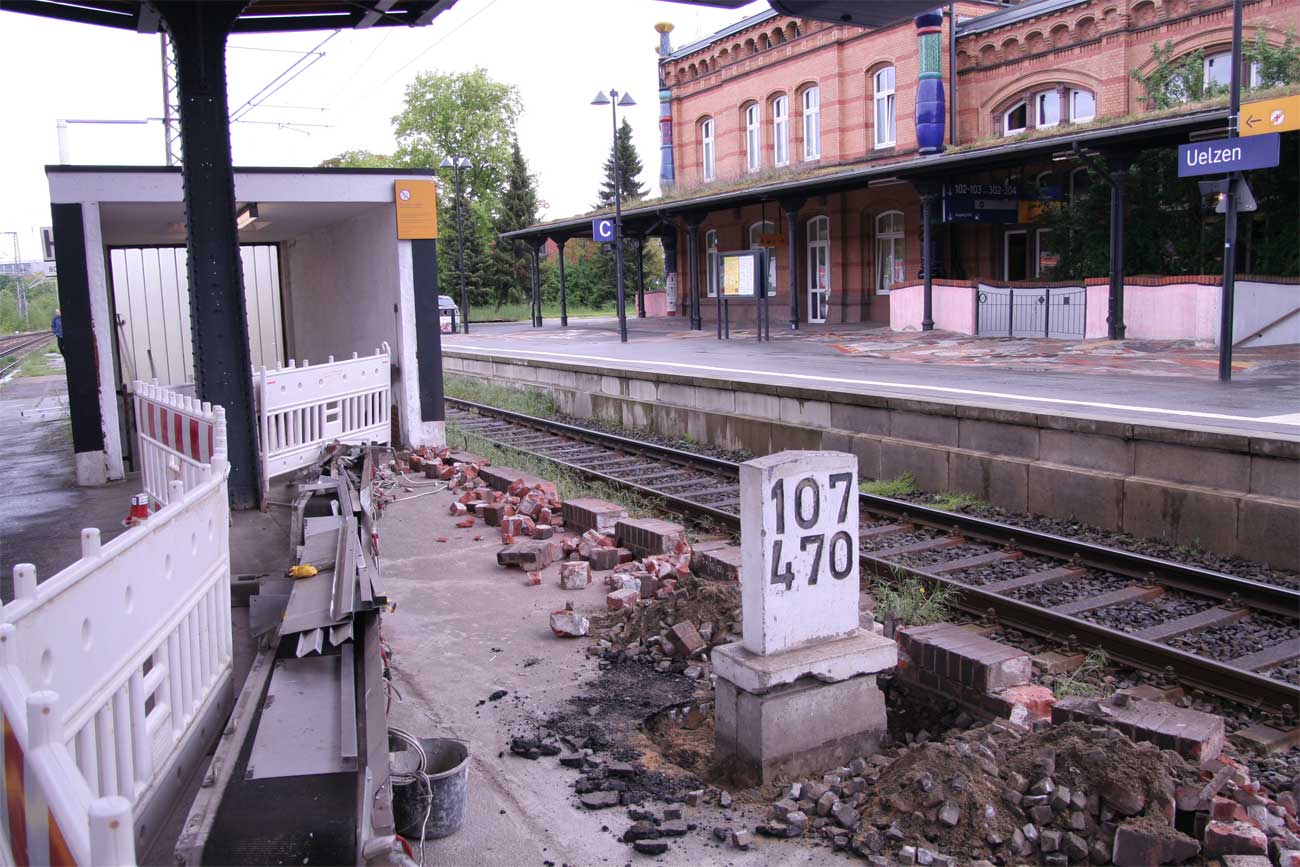Bf Uelzen Pbf - Verpackter Nullstein wegen Bauarbeiten