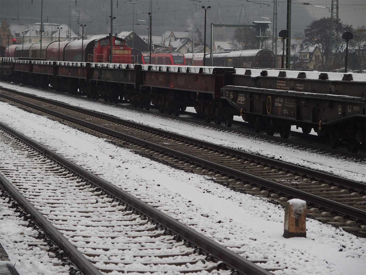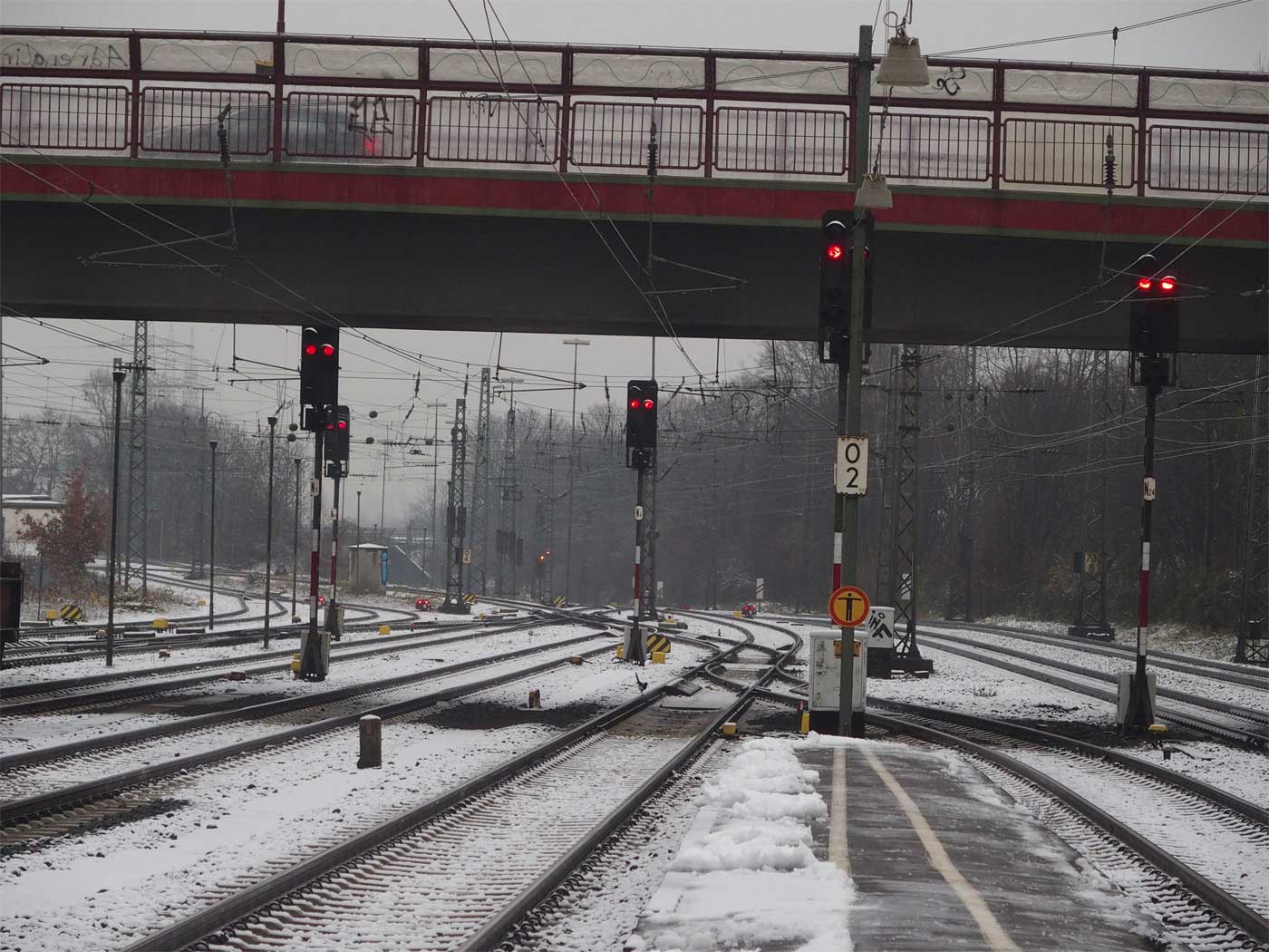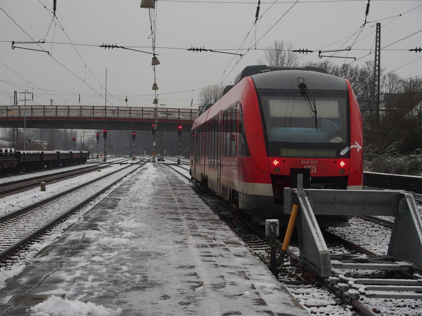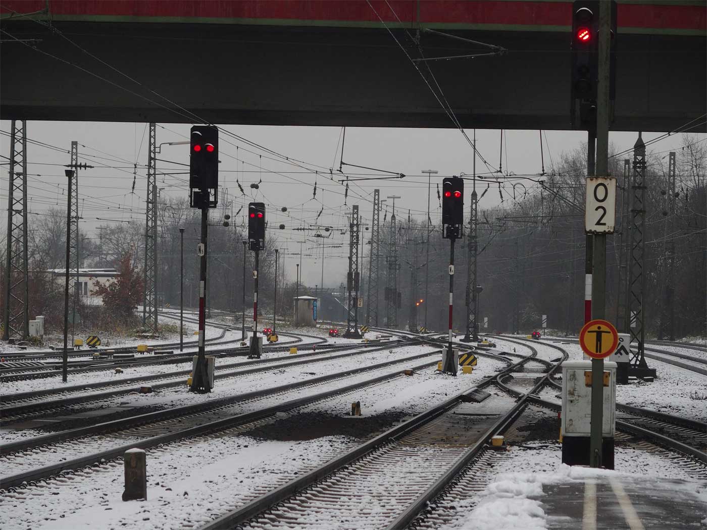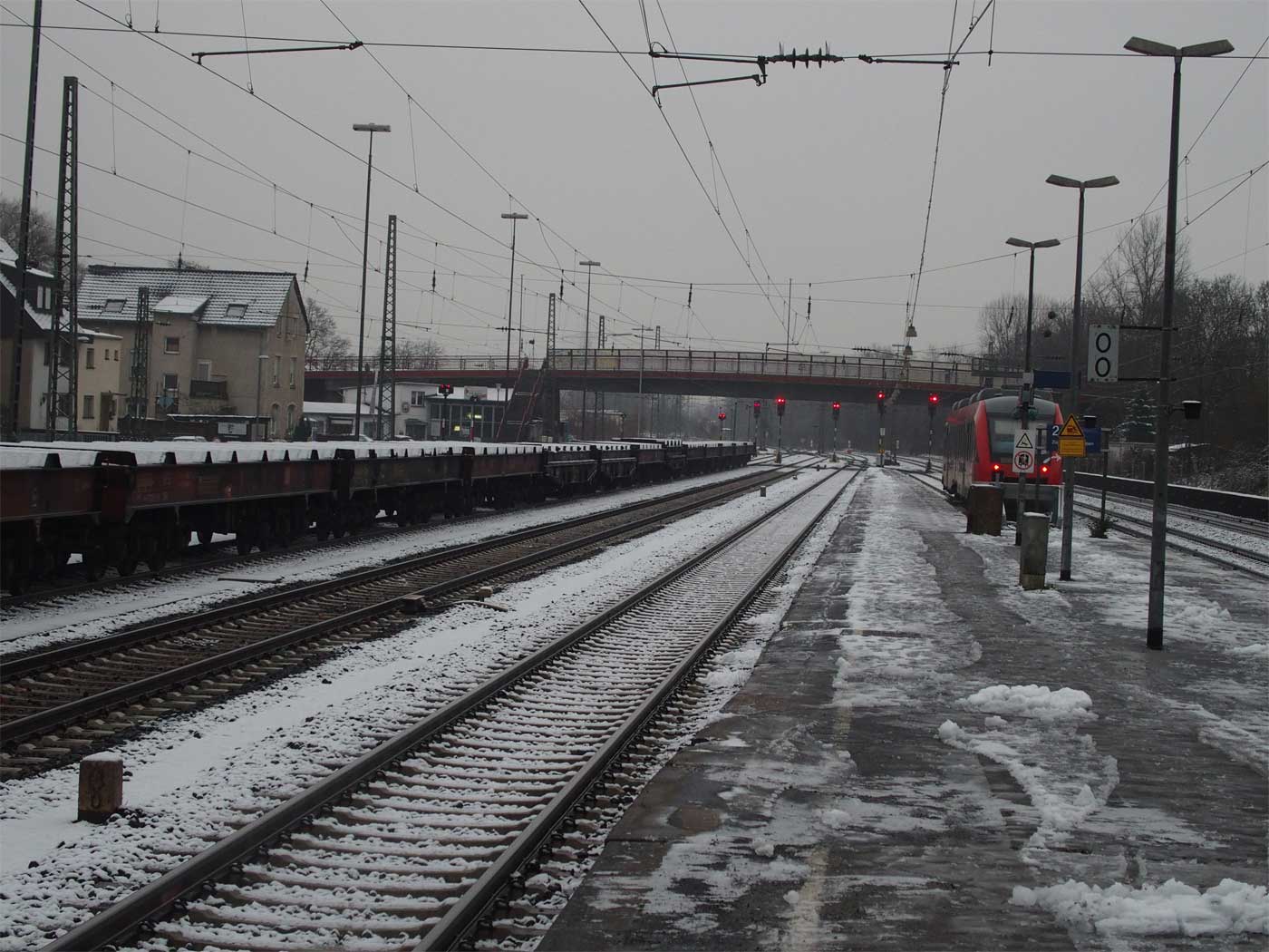 Links die beiden Streckengleise der Strecke Kalscheuren (Hürth-Kalscheuren) 0,64 - Euskirchen 30,06 - Jünkerath 82,97 - Gerolstein 101,47 - Ehrang 163,46