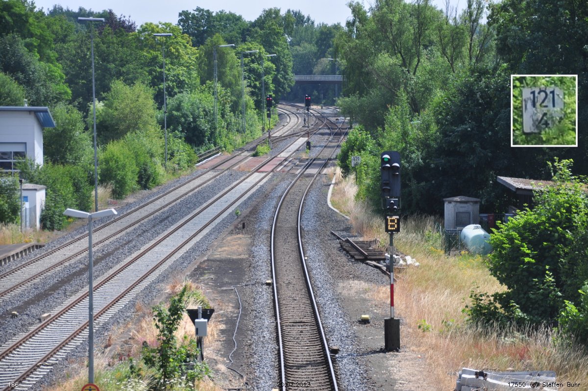 | Oberkotzau Pbf | 121,62 | km 87,02 der Strecke Weiden (Oberpf) 0,0 - Marktredwitz 51,07 - Oberkotzau 87,02 |