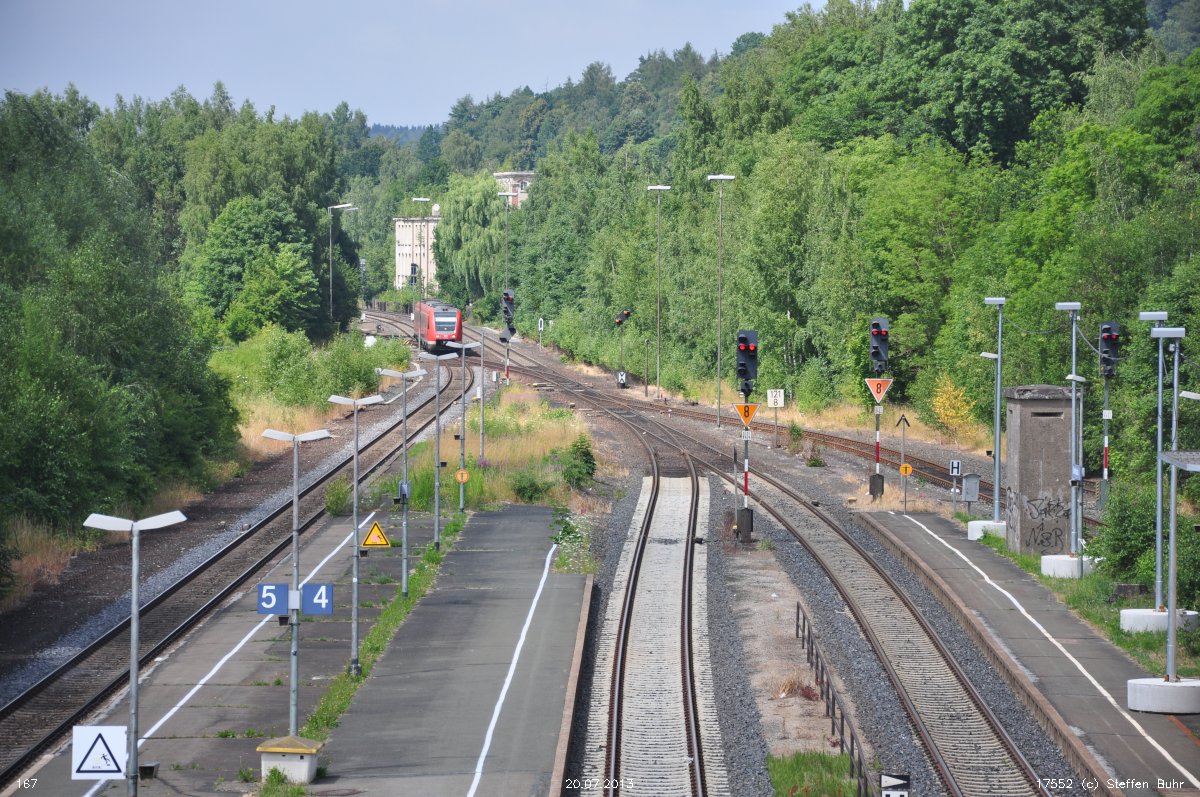 | Hof Hbf | 127,23 | km 164,75 der Strecke Leipzig Bayerischer Bf 0,12 - Altenburg Hbf 38,63 - Werdau 73,81 - Reichenbach (Vogtl) 90,96 - Plauen ob. Bf 116,11 - Hof Hbf 164,75 |
