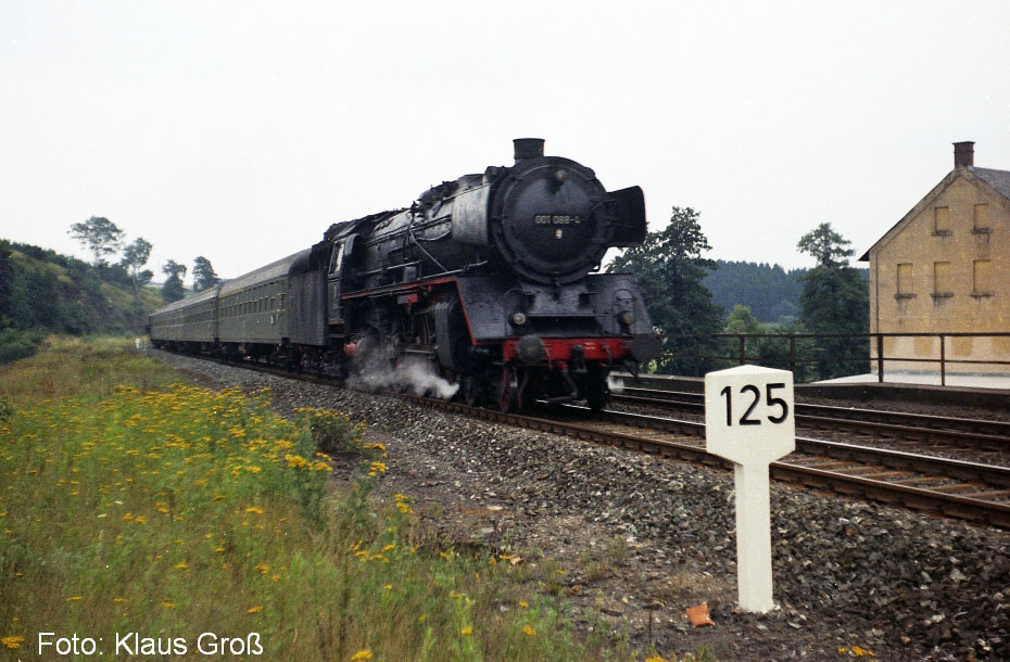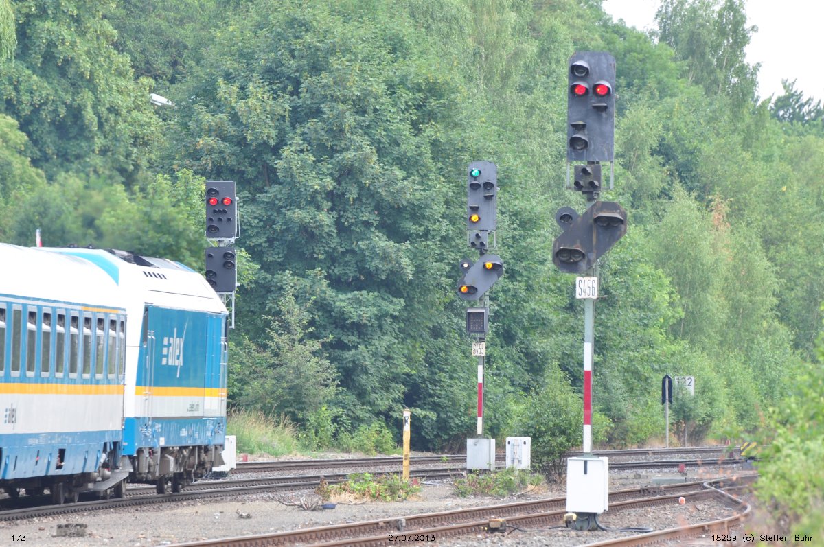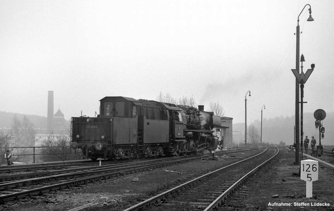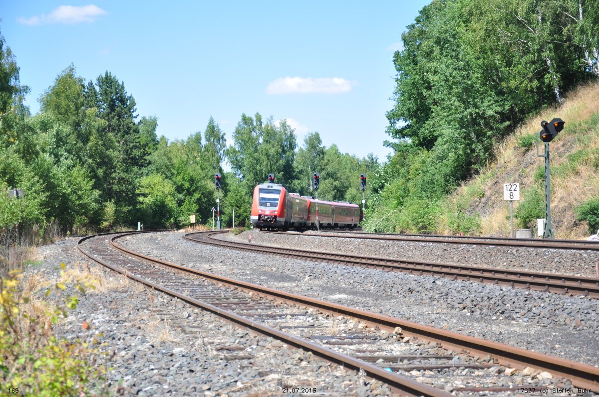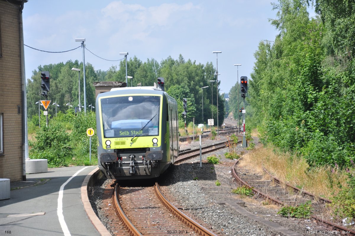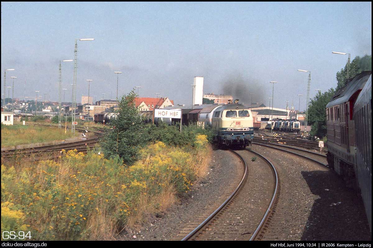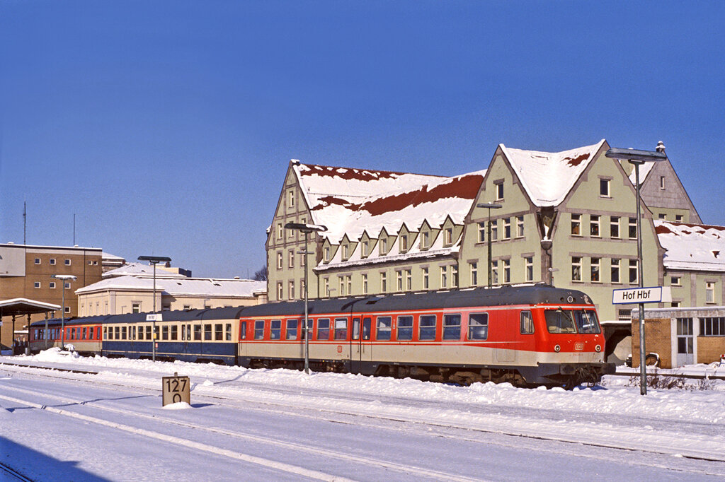 | Hof Hbf | 127,23 | km 164,75 der Strecke Leipzig Bayerischer Bf 0,12 - Altenburg Hbf 38,63 - Werdau 73,81 - Reichenbach (Vogtl) 90,96 - Plauen ob Bf 116,11 - Grenze DDR/BRD 151,699 - Hof Hbf 164,75 |