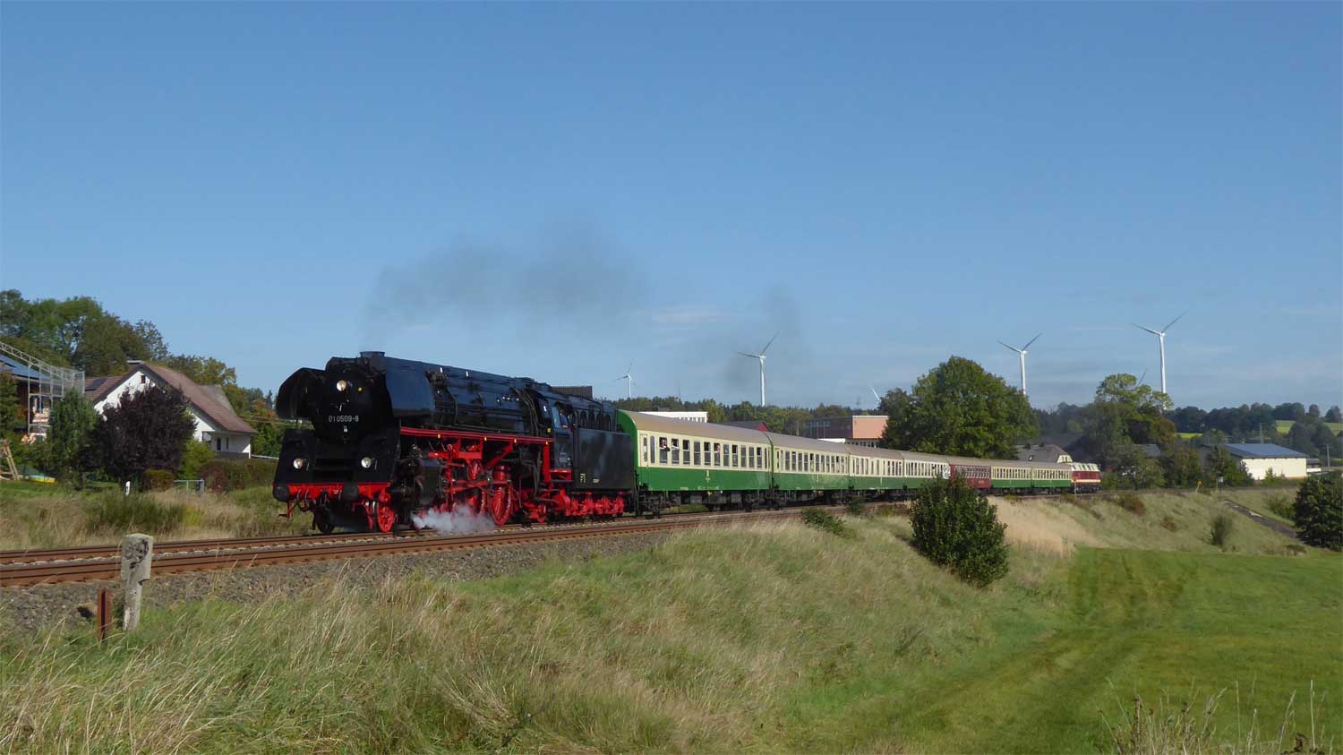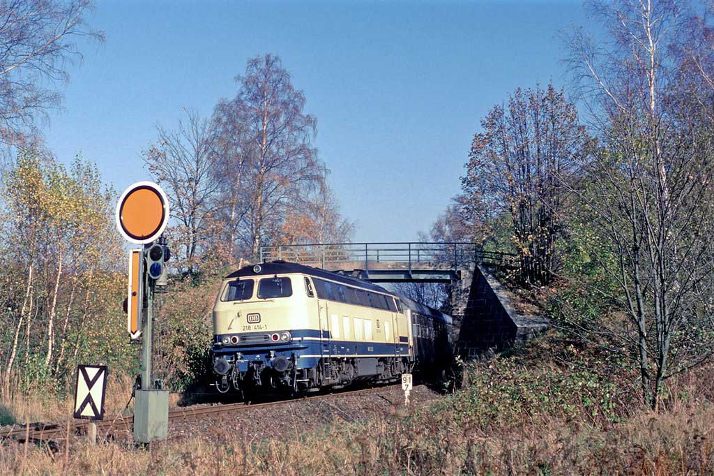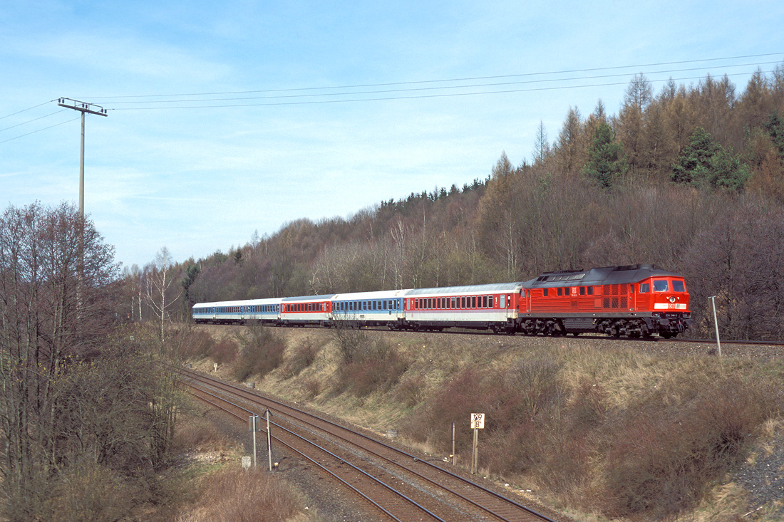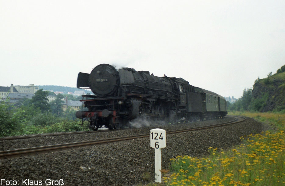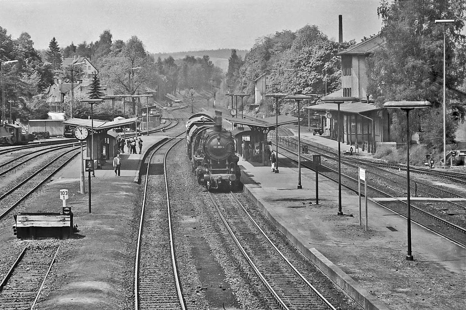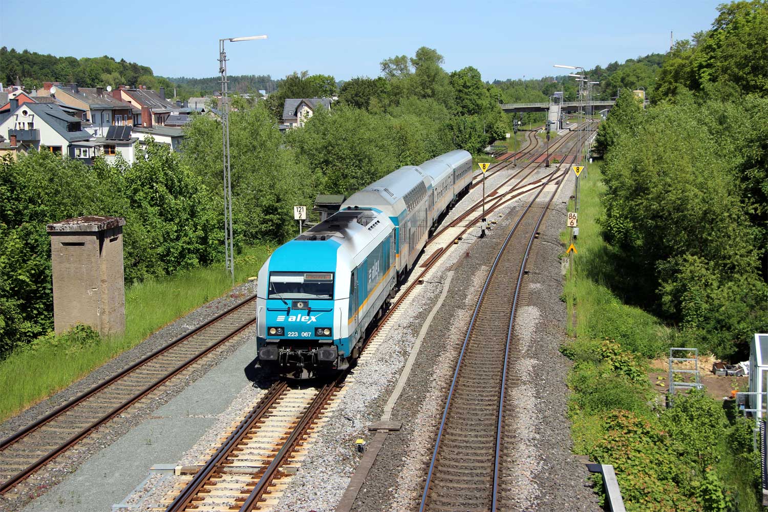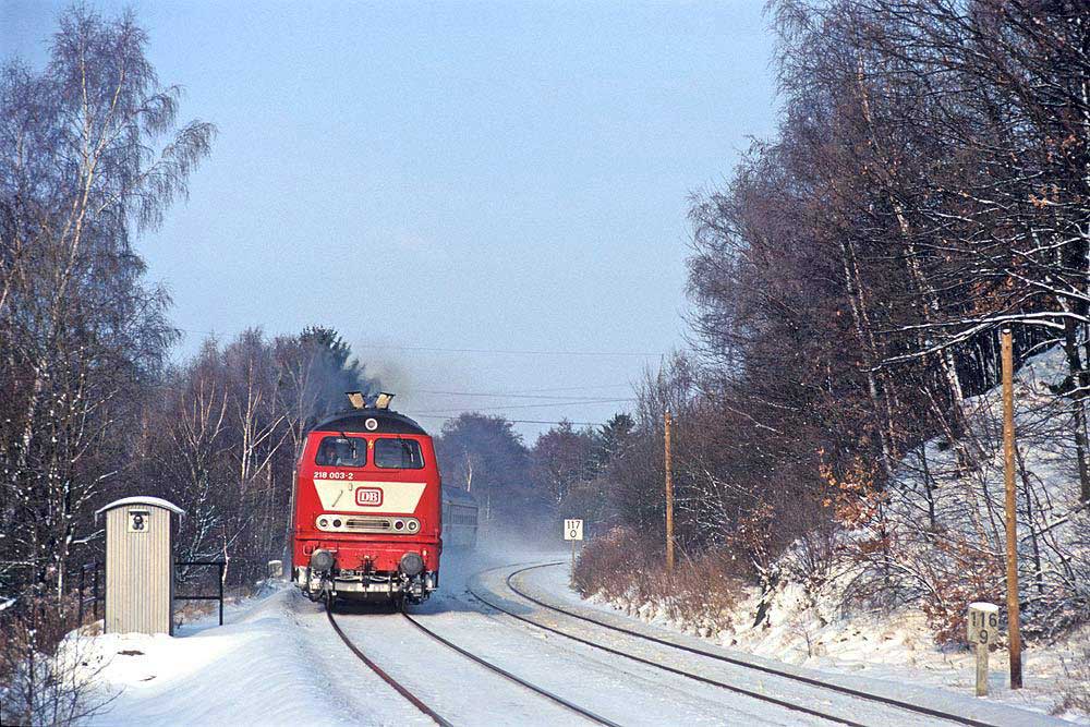 | Hof Hbf | 127,23 | km 164,75 der Strecke Leipzig Bayerischer Bf 0,12 - Altenburg Hbf 38,63 - Werdau 73,81 - Reichenbach (Vogtl) 90,96 - Plauen ob Bf 116,11 - Grenze DDR/BRD 151,699 - Hof Hbf 164,75 |