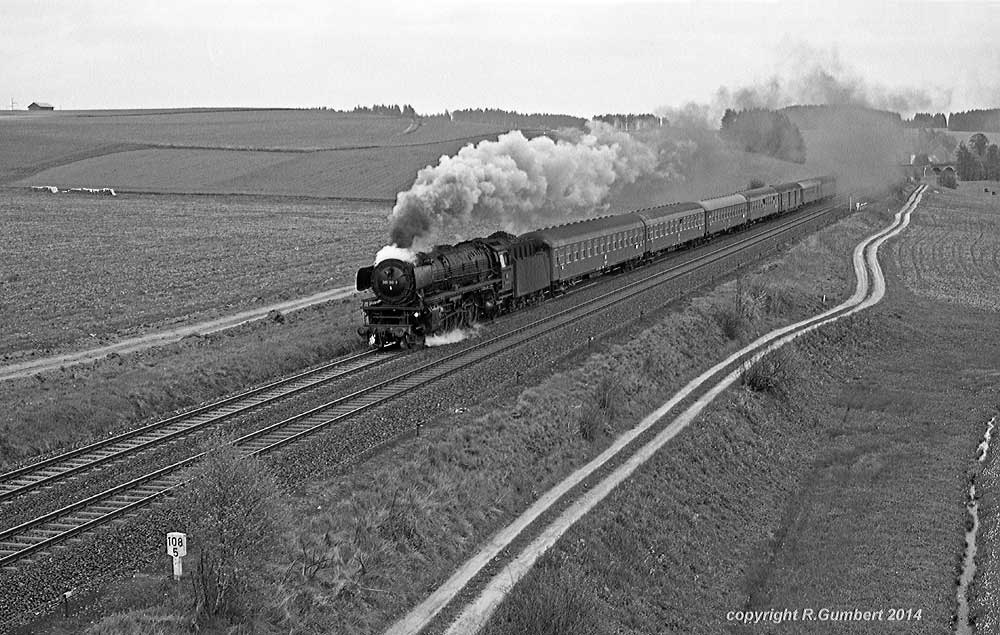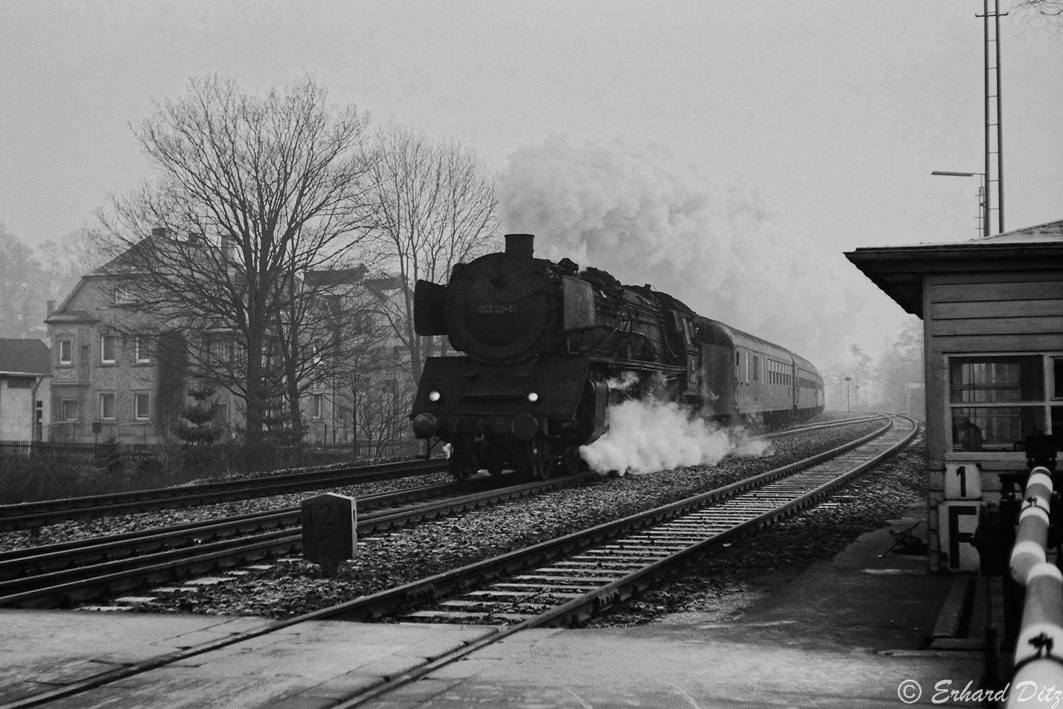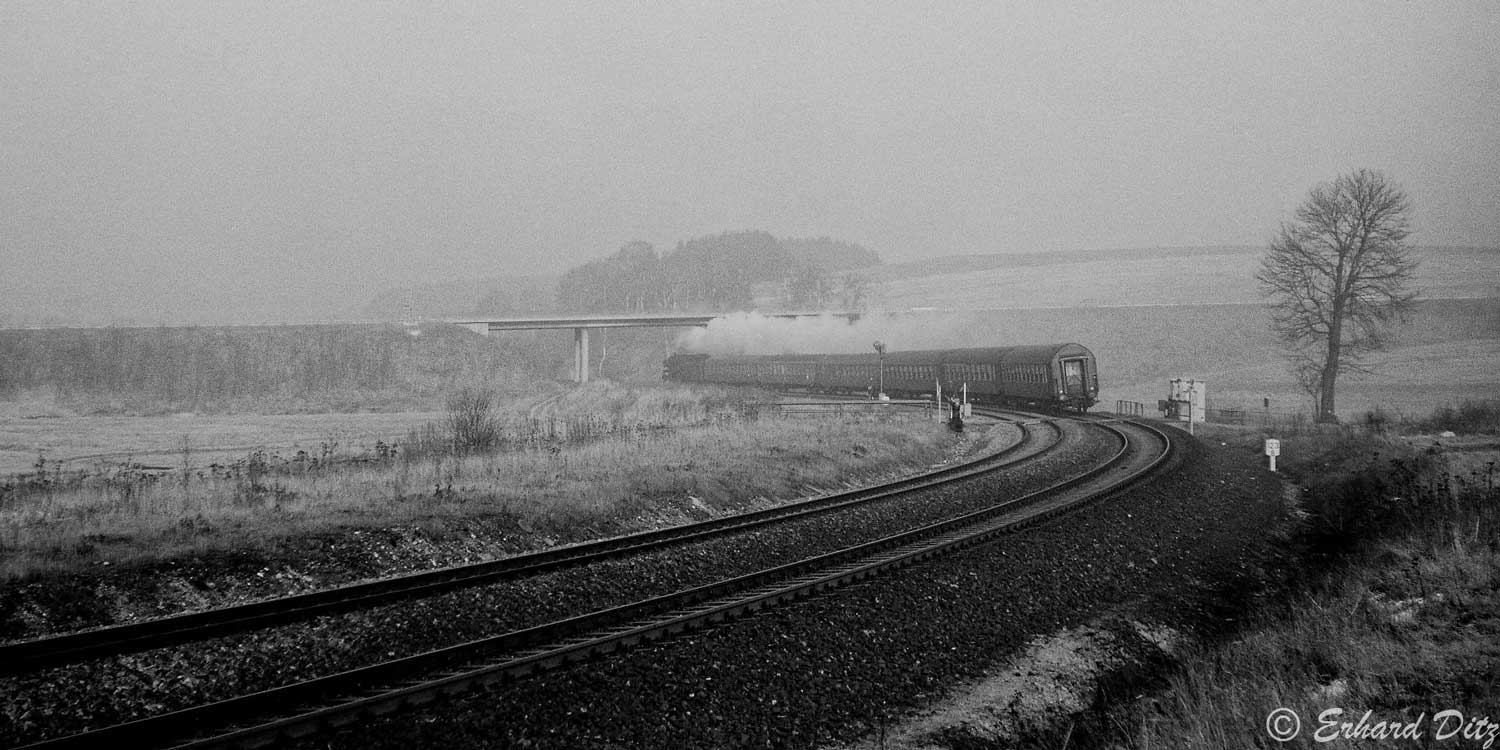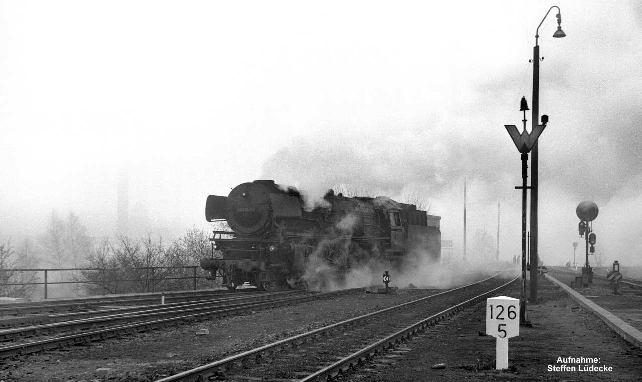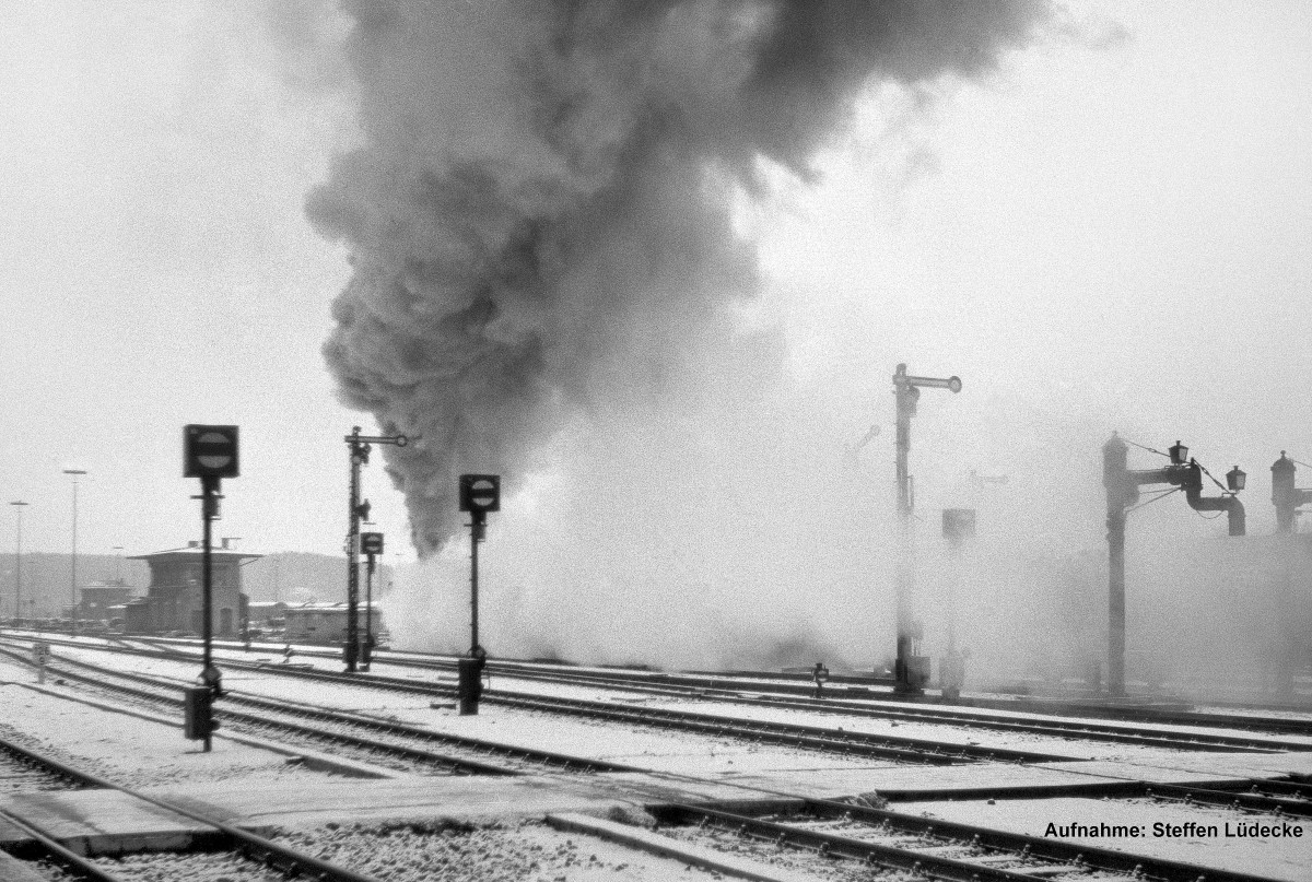 und ganz links ist im qualmigen Dunst gerade noch 052 475 vor dem N 3419 nach Selb Stadt erkennbar.