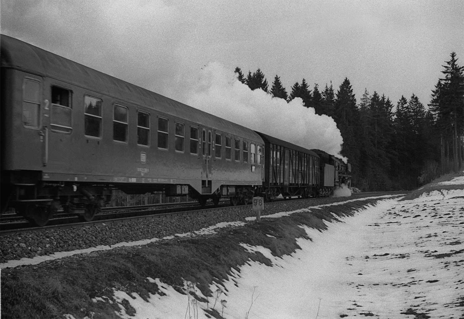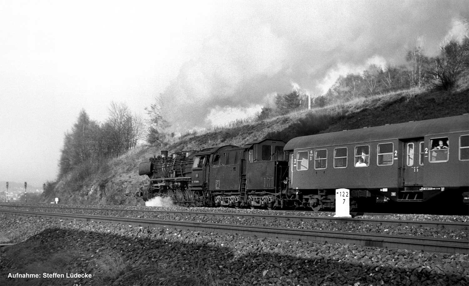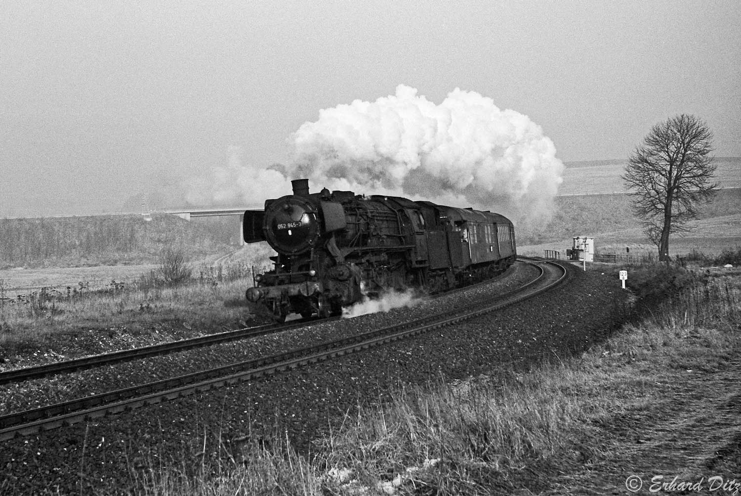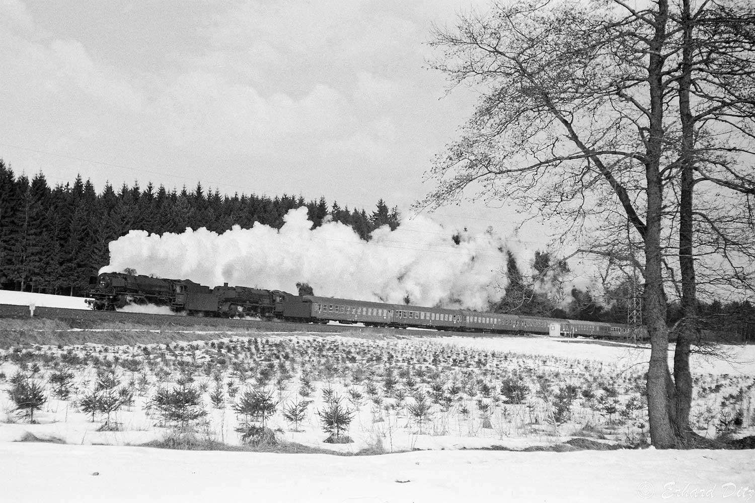 und ganz links ist im qualmigen Dunst gerade noch 052 475 vor dem N 3419 nach Selb Stadt erkennbar.