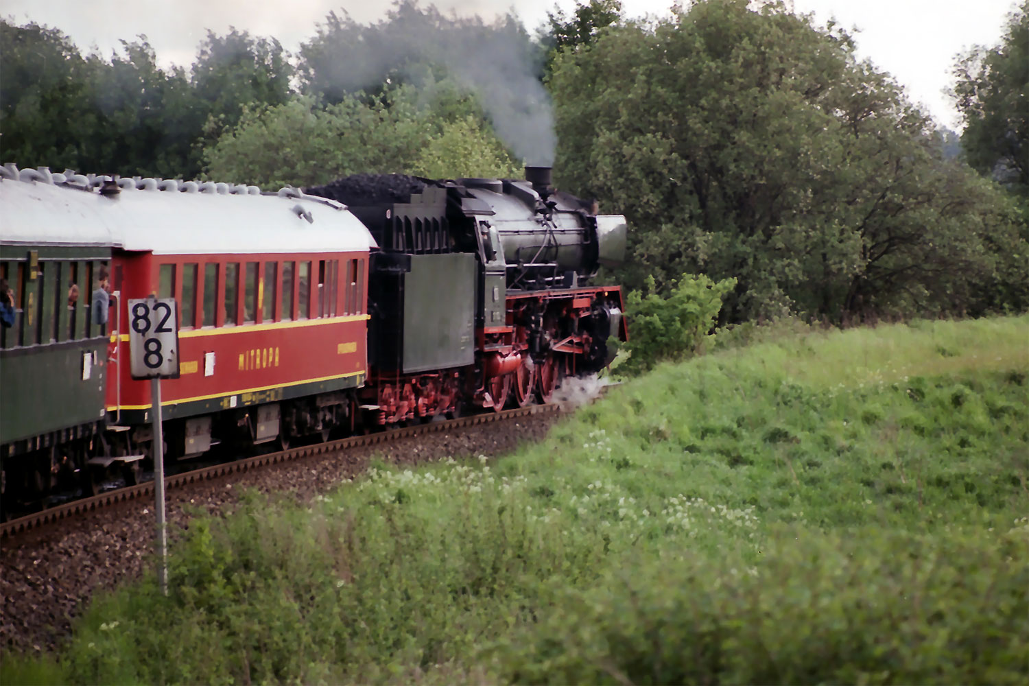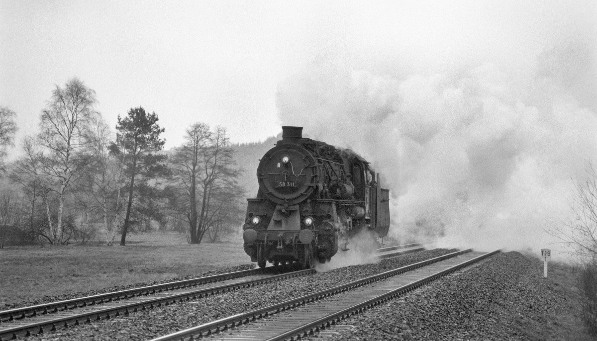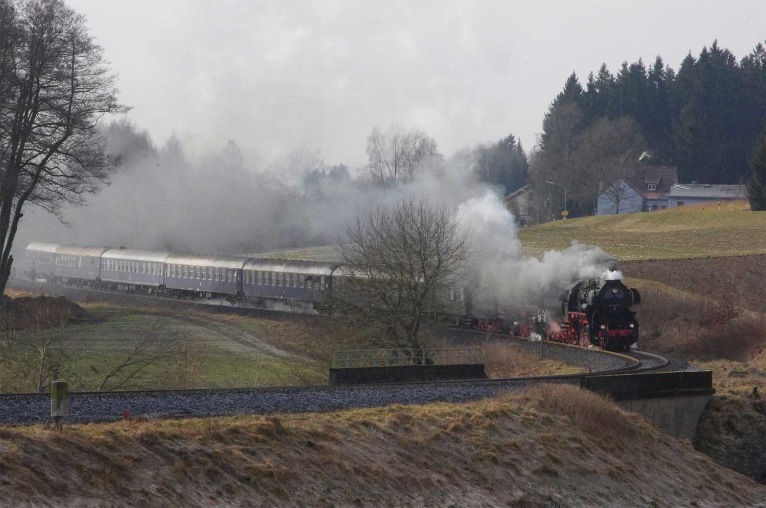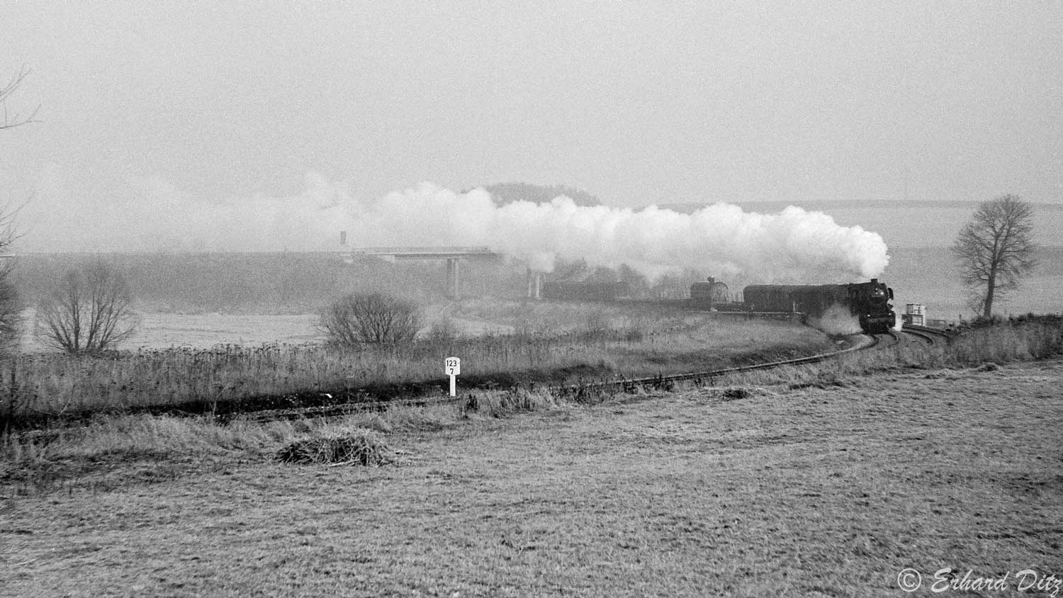 und ganz links ist im qualmigen Dunst gerade noch 052 475 vor dem N 3419 nach Selb Stadt erkennbar.