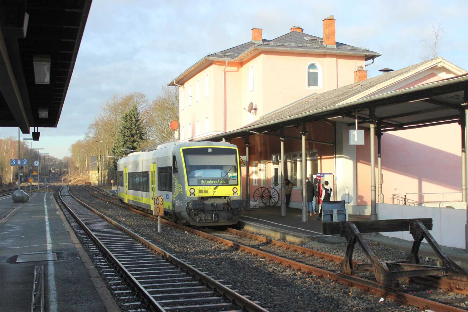 | Münchberg | 102,97 | km 0,0 der Strecke Münchberg 0,0 - Helmbrechts 9,31 (= km 10,58 - Schauenstein 4,91 - Streckenunterbrechung - Selbitz 0,0 ) |