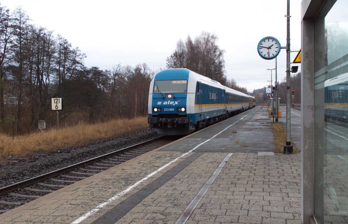 | km 54,50 der Strecke Cheb (Eger) 0,0 - Aš (Asch) 27,55 - Grenze Tschechien/Deutschland 29,601 - Selb-Plößberg 34,82 - Oberkotzau 54,50 | ||
