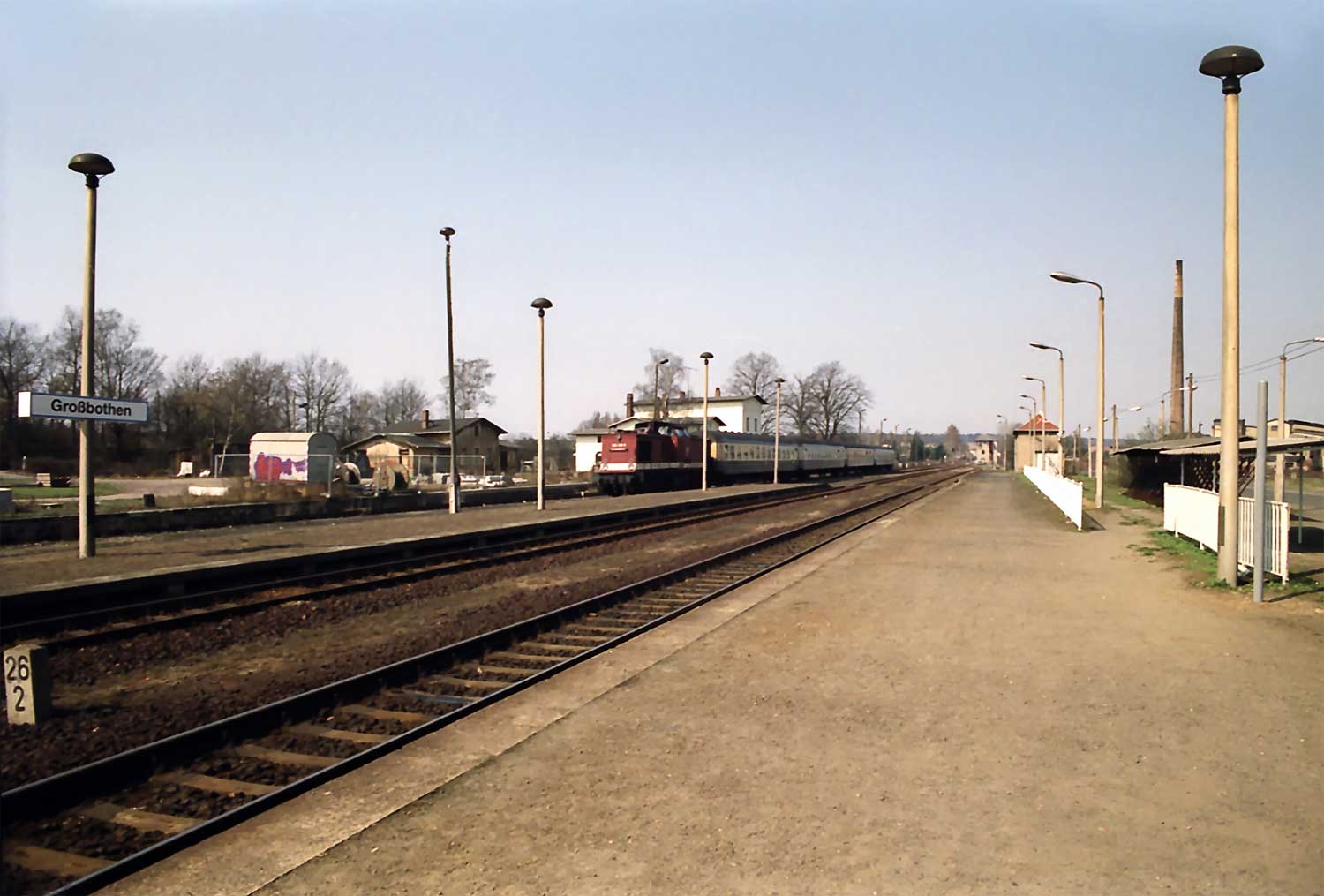 | Großbothen | 26,24 | km 56,77 der Strecke Glauchau (Sachs) -0,50 - Rochlitz (Sachs) 39,24 - Großbothen 56,77 - Streckenunterbrechung - Wurzen 81,98 (GW) (6629) |